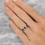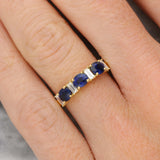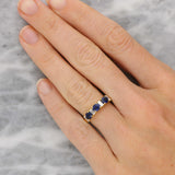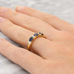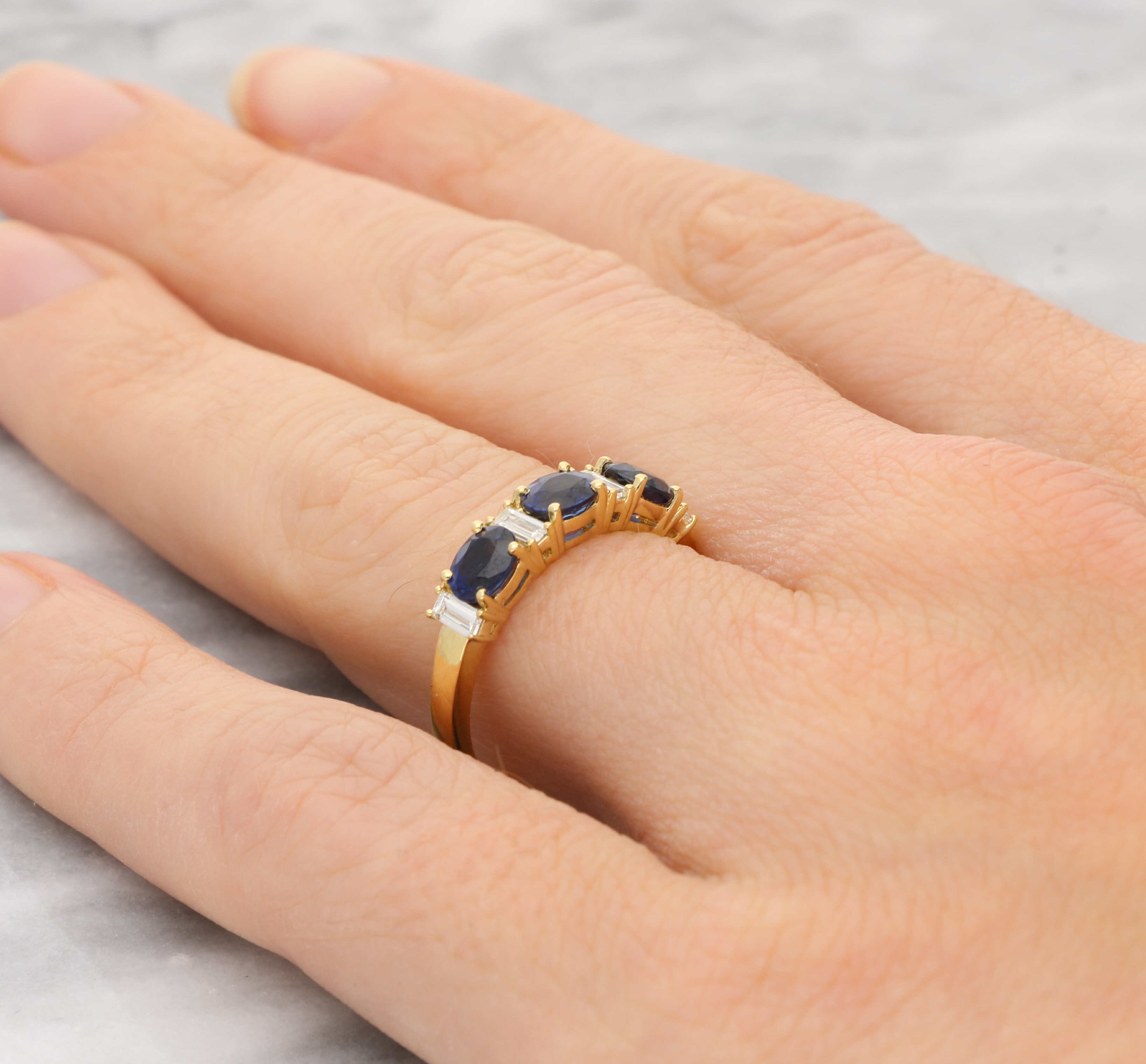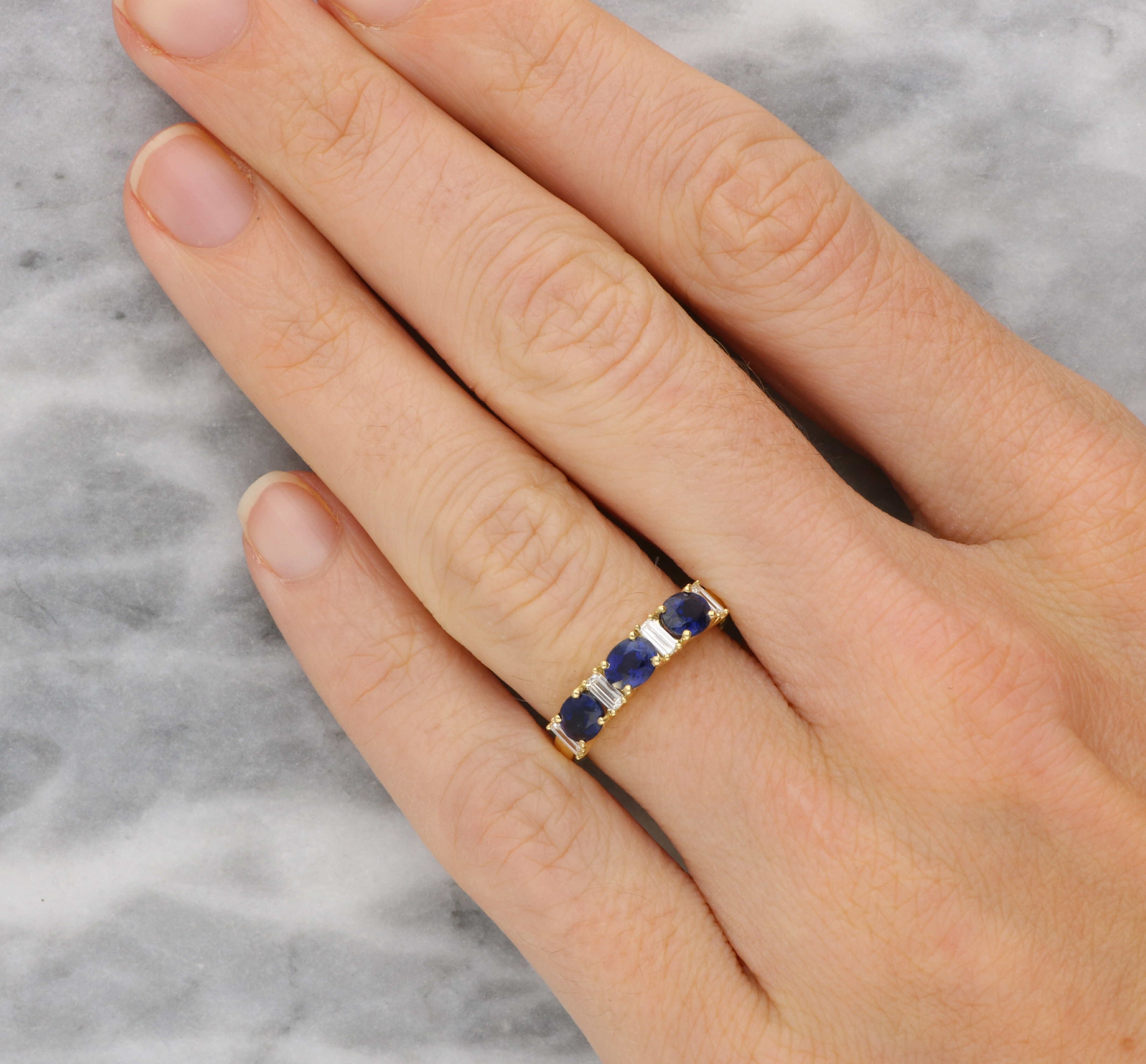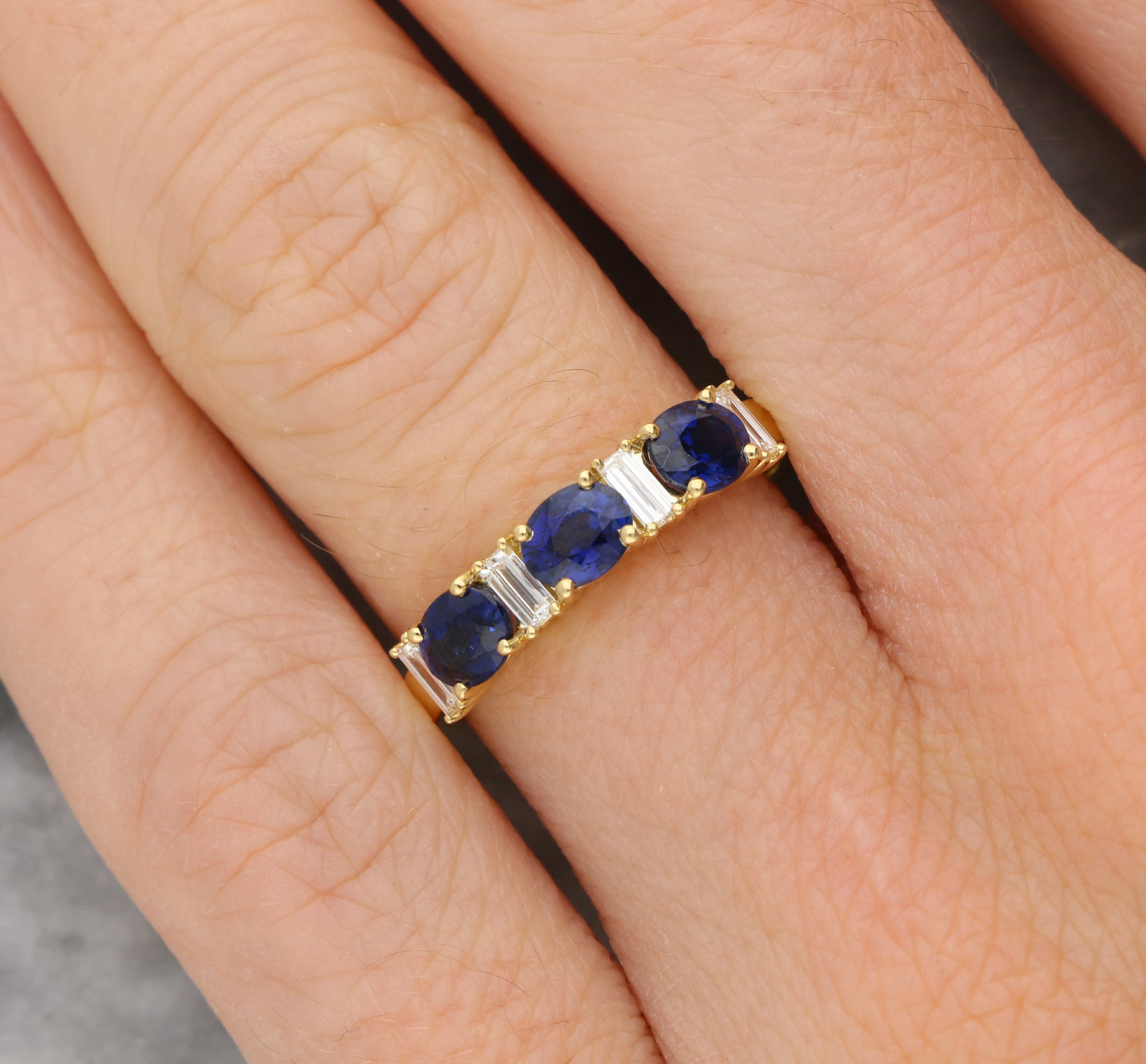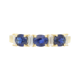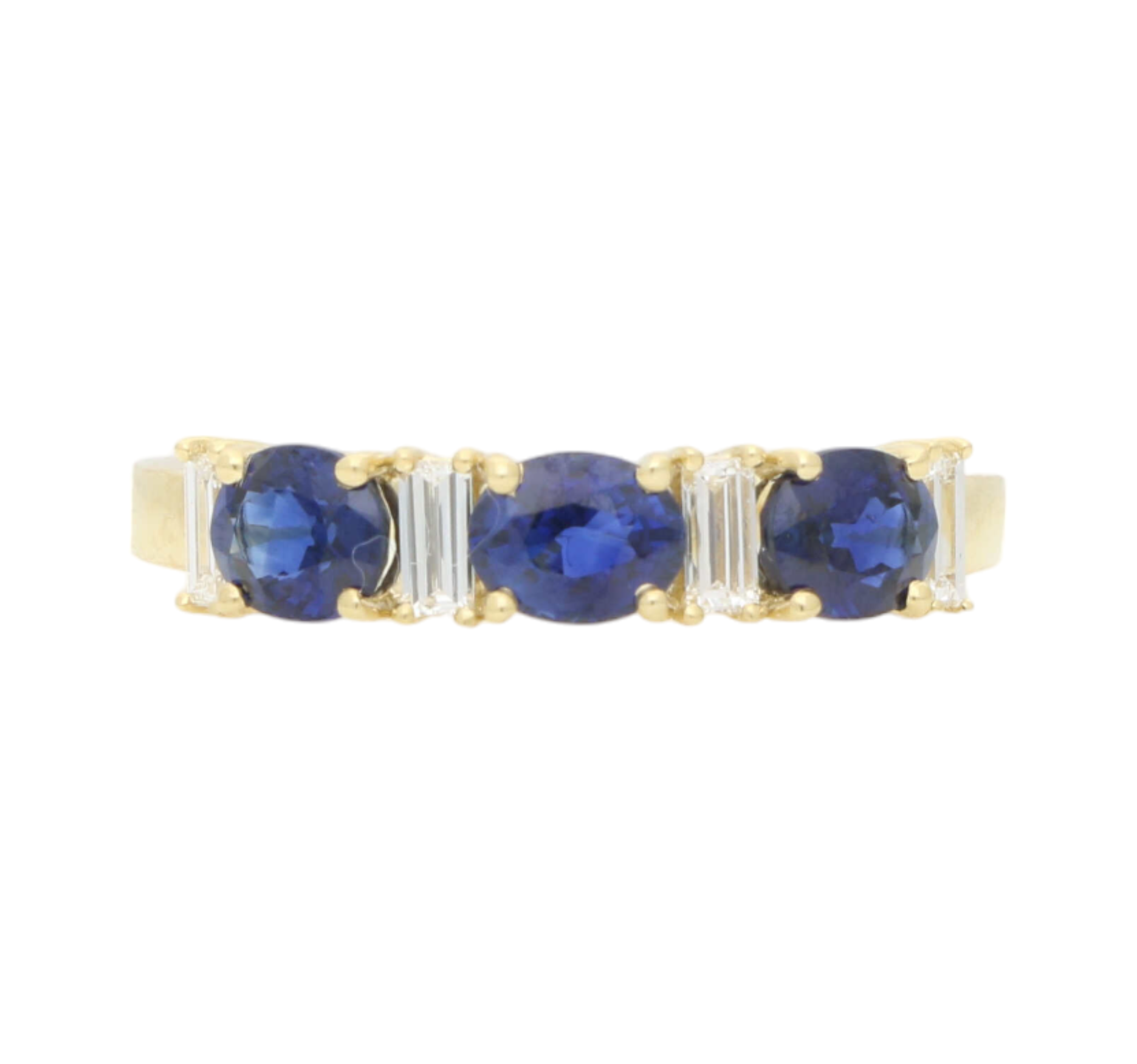 An 18ct yellow gold sapphire and baguette-cut diamond half eternity ring