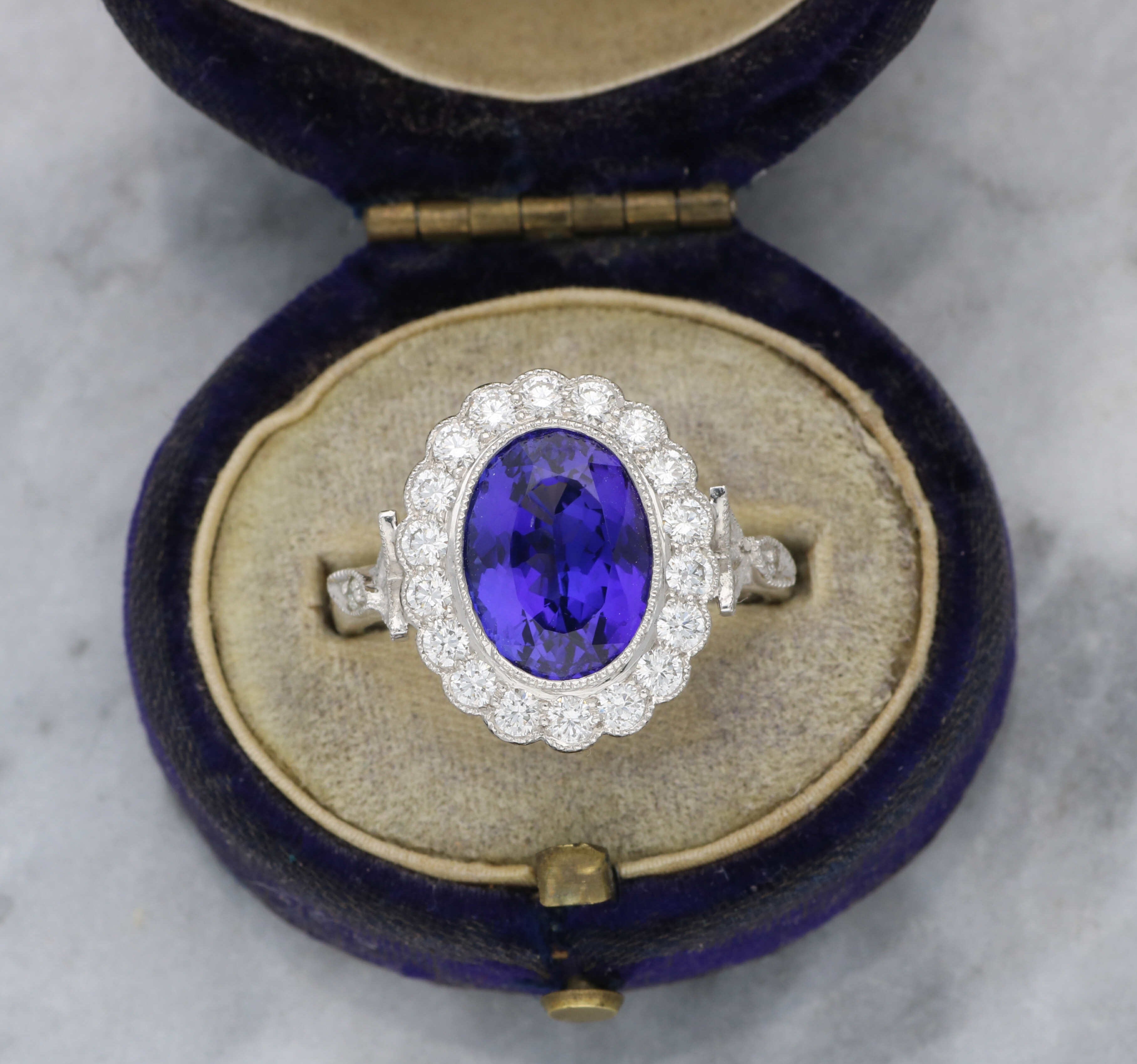 18ct tanzanite and diamond cluster ring