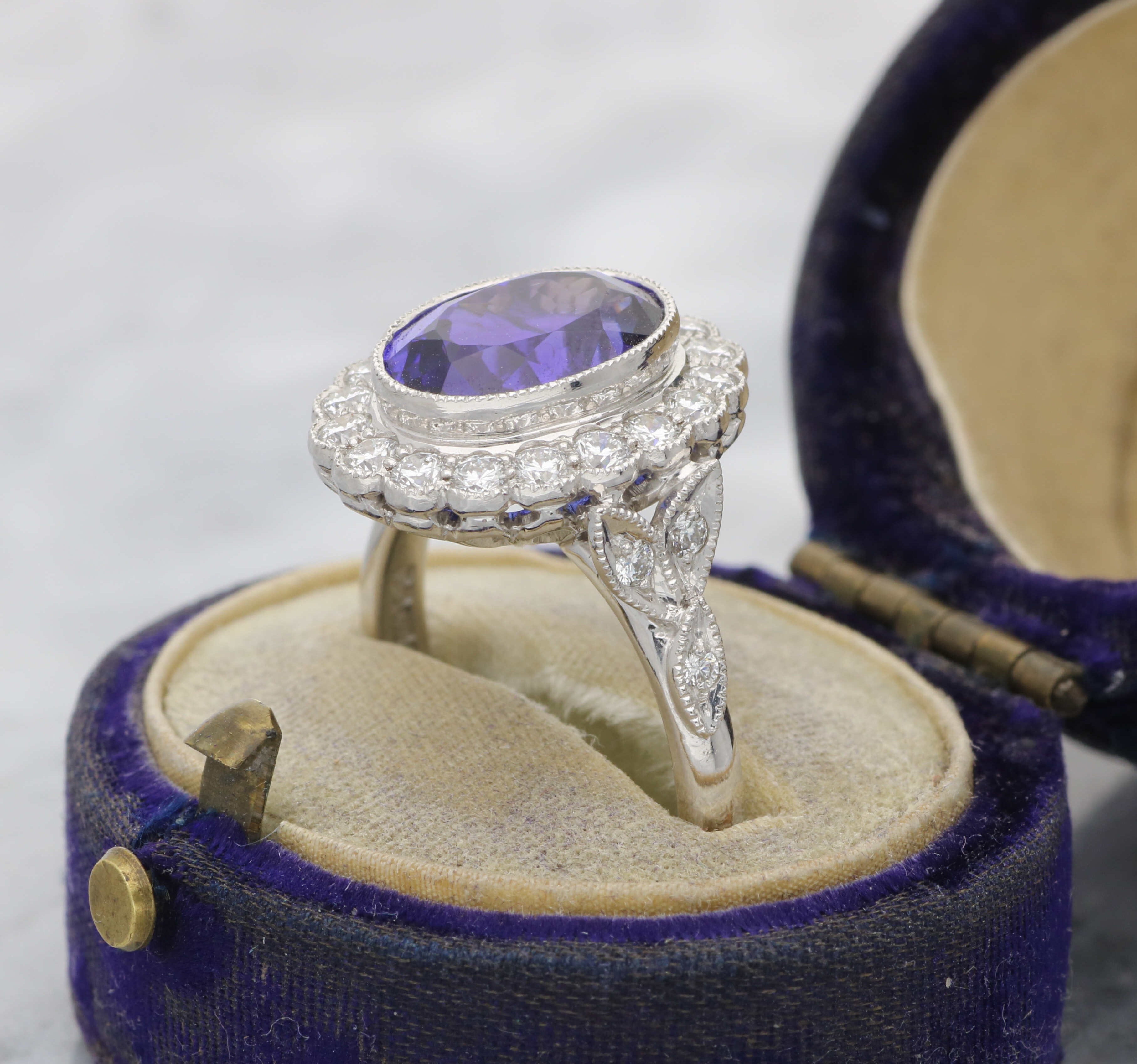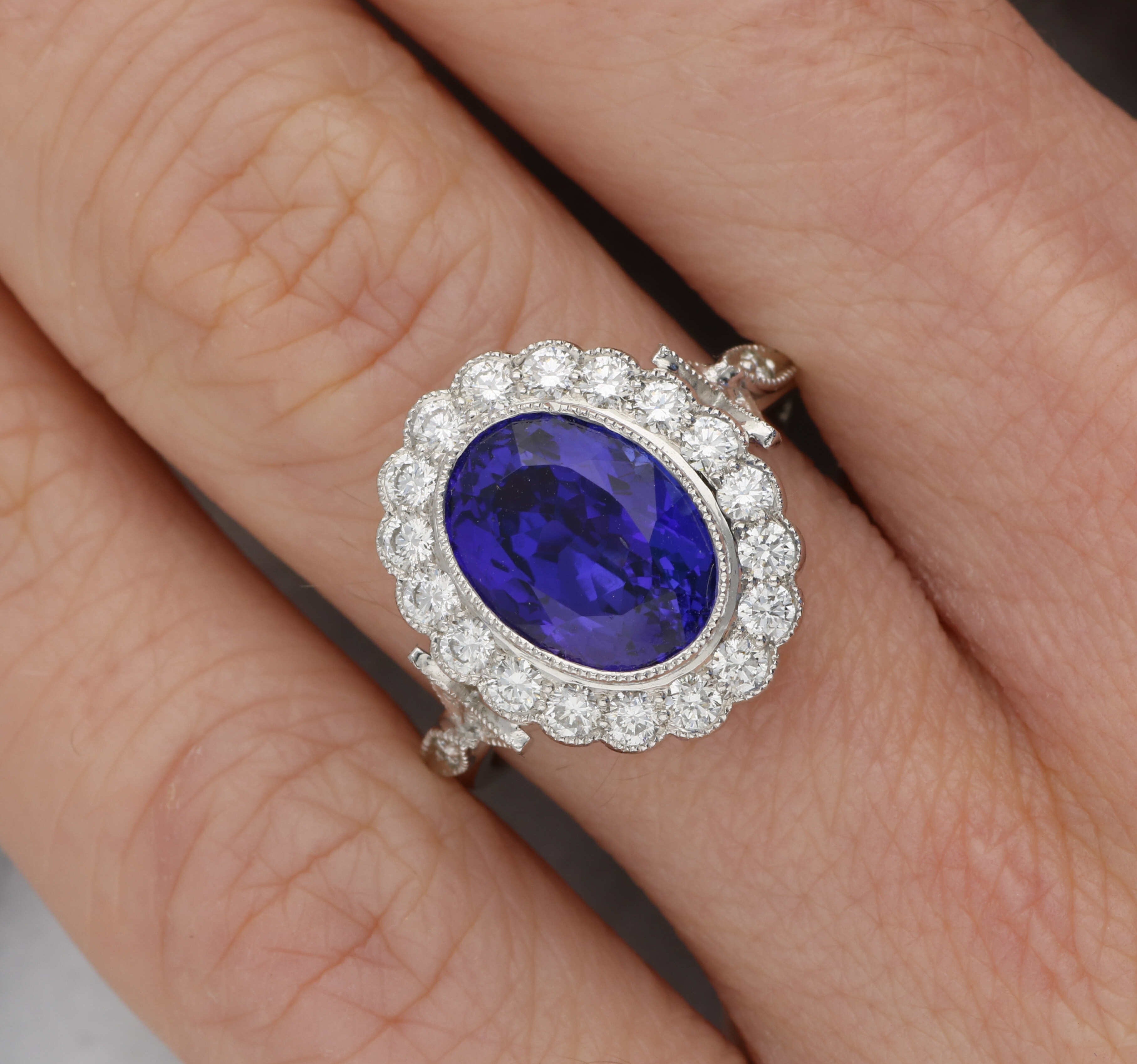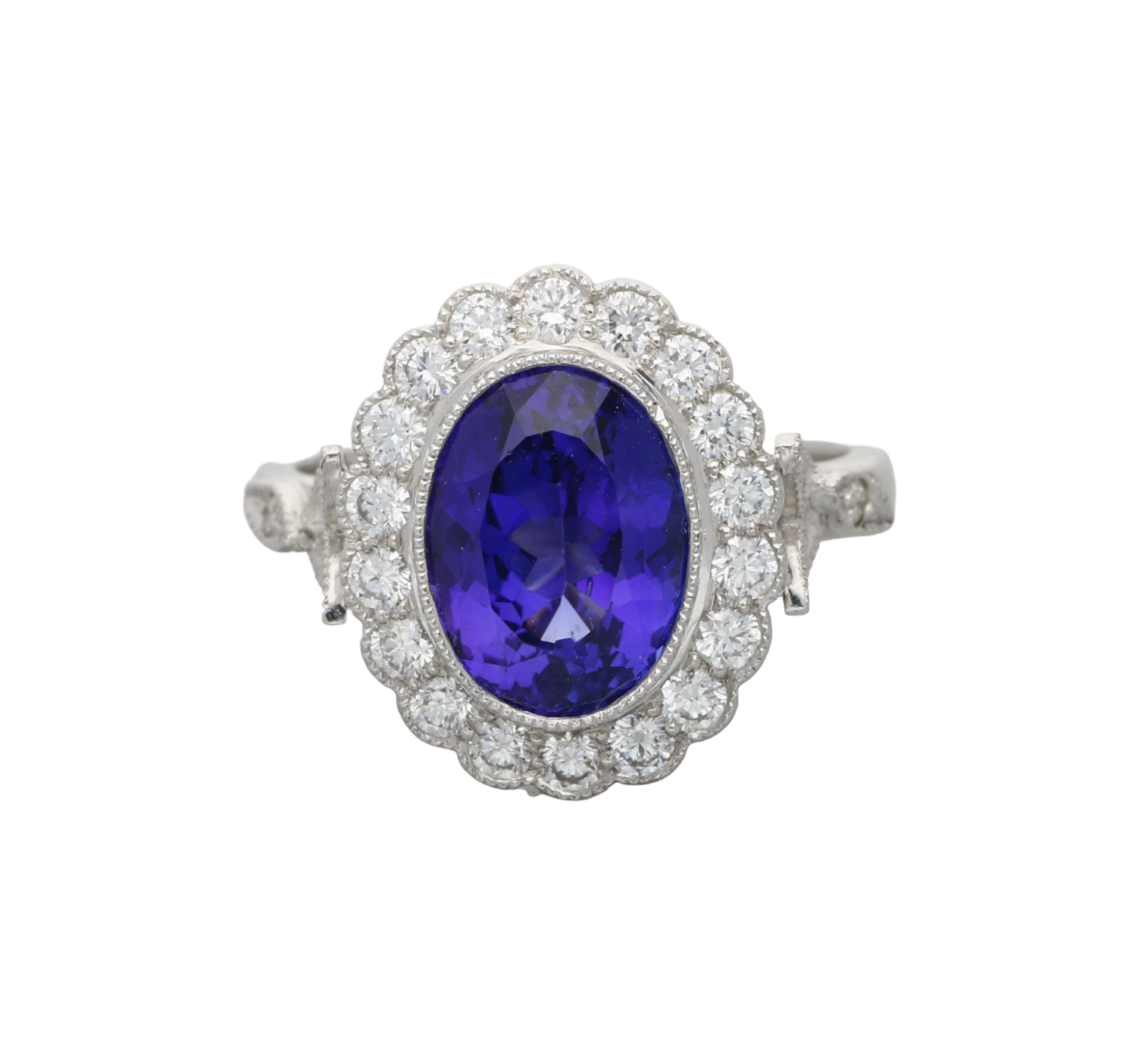 Carat Weight: The tanzanite weighs 3.68ct and the surrounding diamonds weigh 0.71ct.