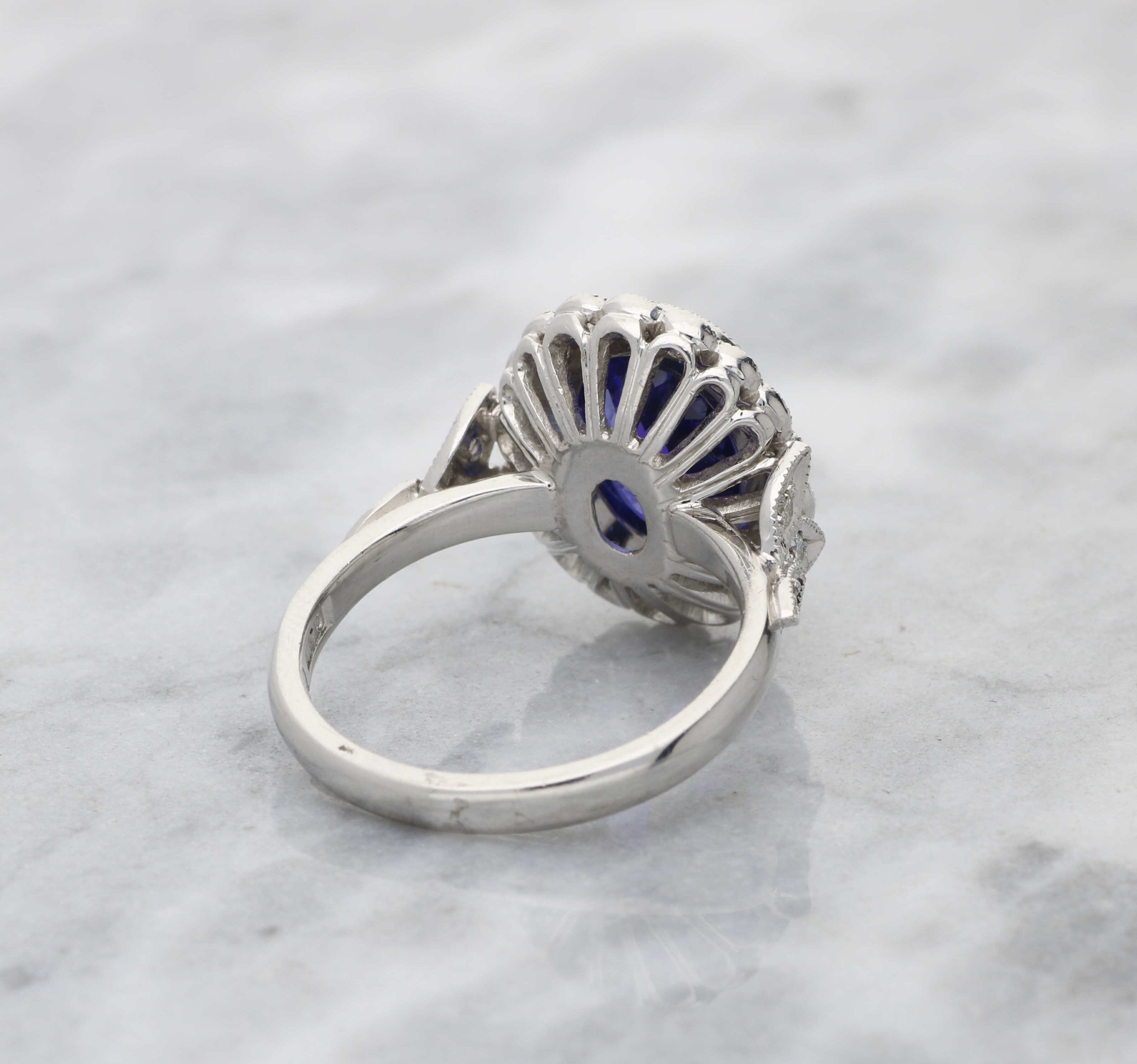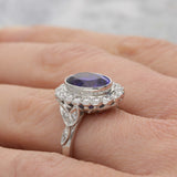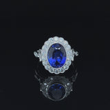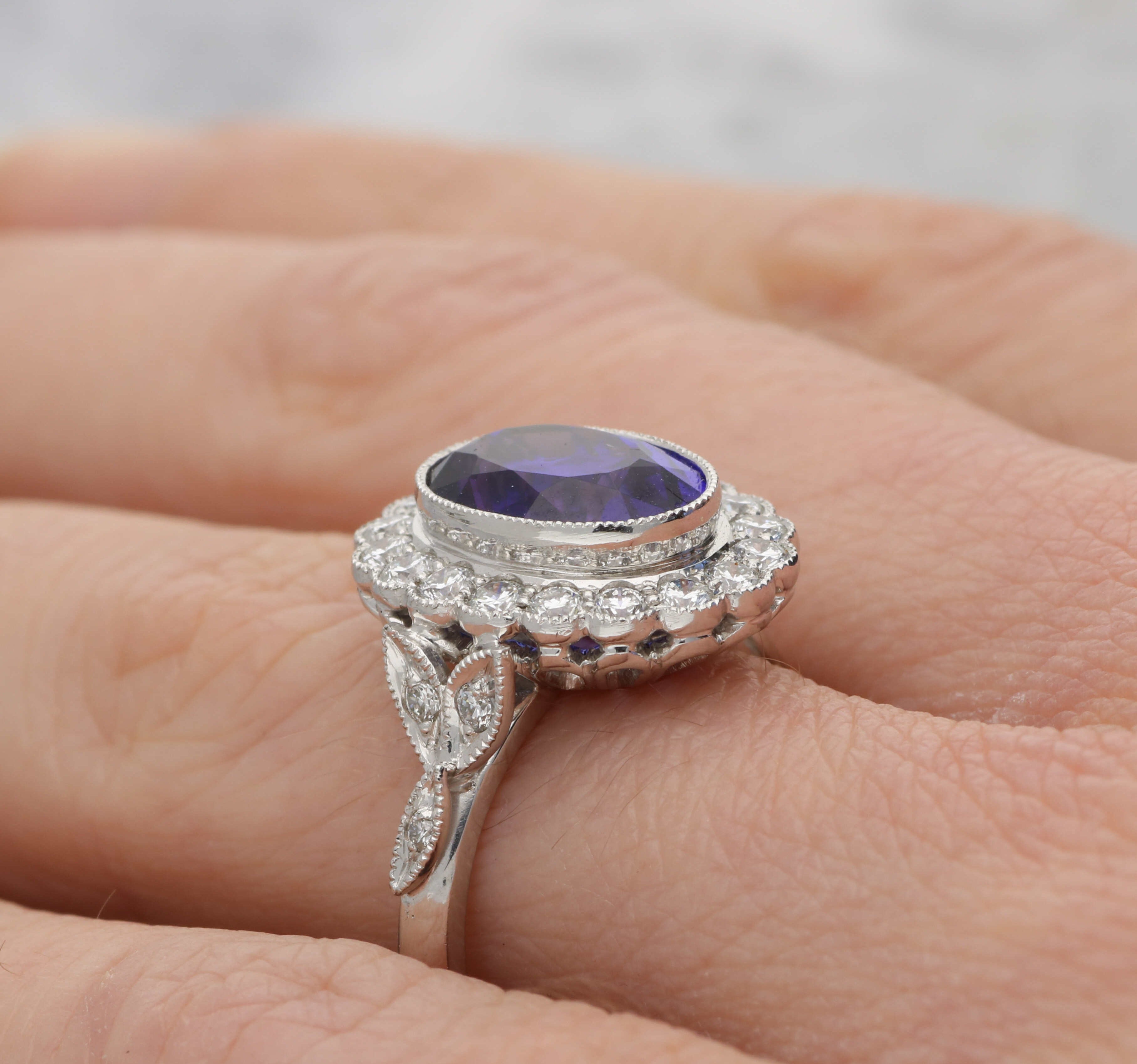 Dimensions: The tanzanite measures 11x8.5mm, the head of the ring measures 16x8mm, and sits 7.5mm deep.
