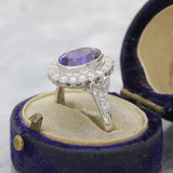 A stunning 18ct white gold tanzanite and diamond cluster ring, hallmarked London 2014.