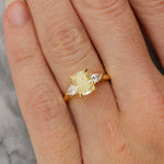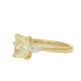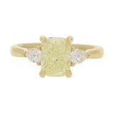GIA Certified 2.02ct Fancy Light Yellow Elongated Cushion Cut Diamond Three Stone Ring