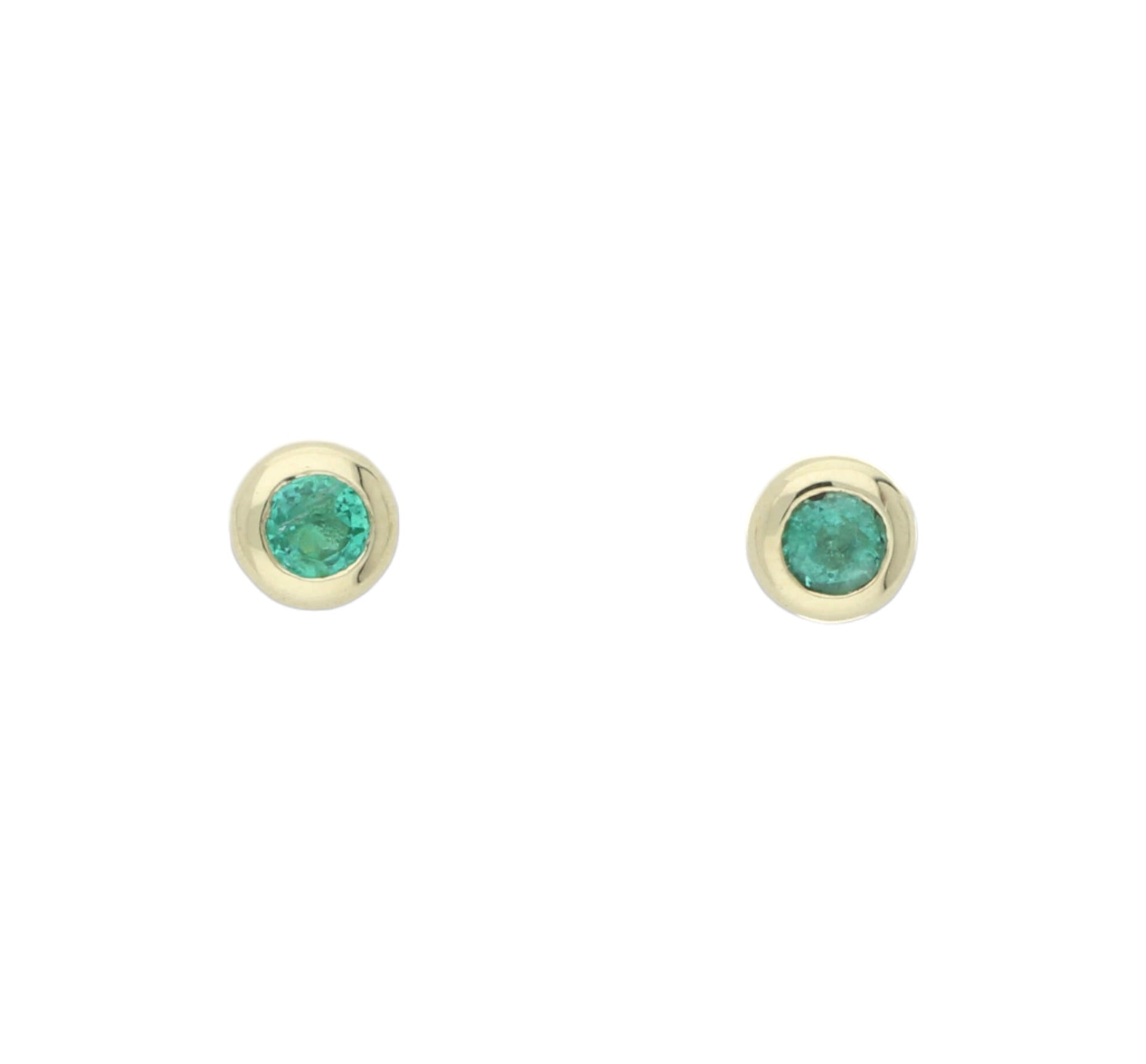 A pair of yellow gold emerald earrings.