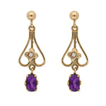 Vintage Style Amethyst and Pearl Earrings in 9ct Yellow Gold