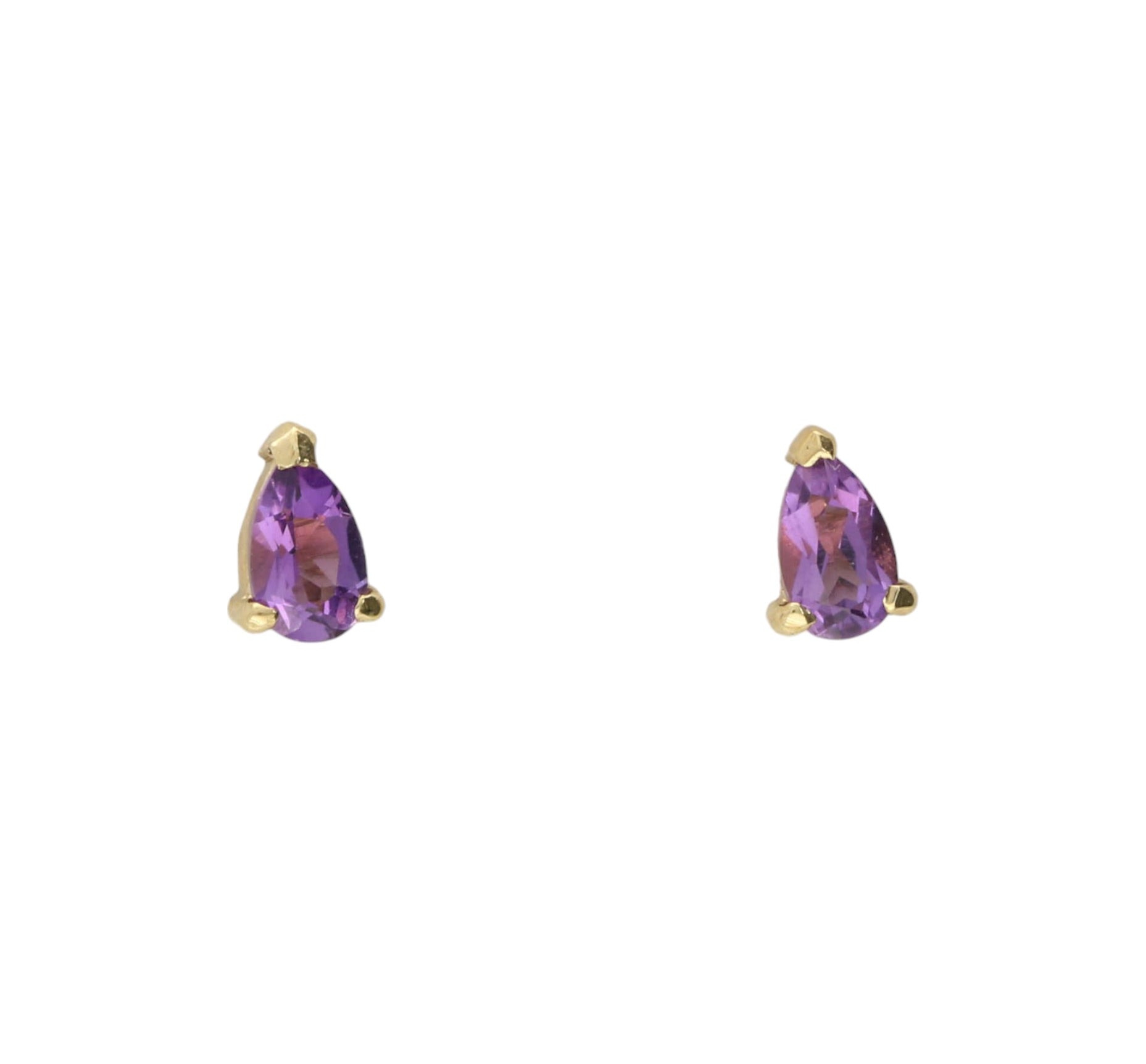 A pair of yellow gold amethyst stud earrings.