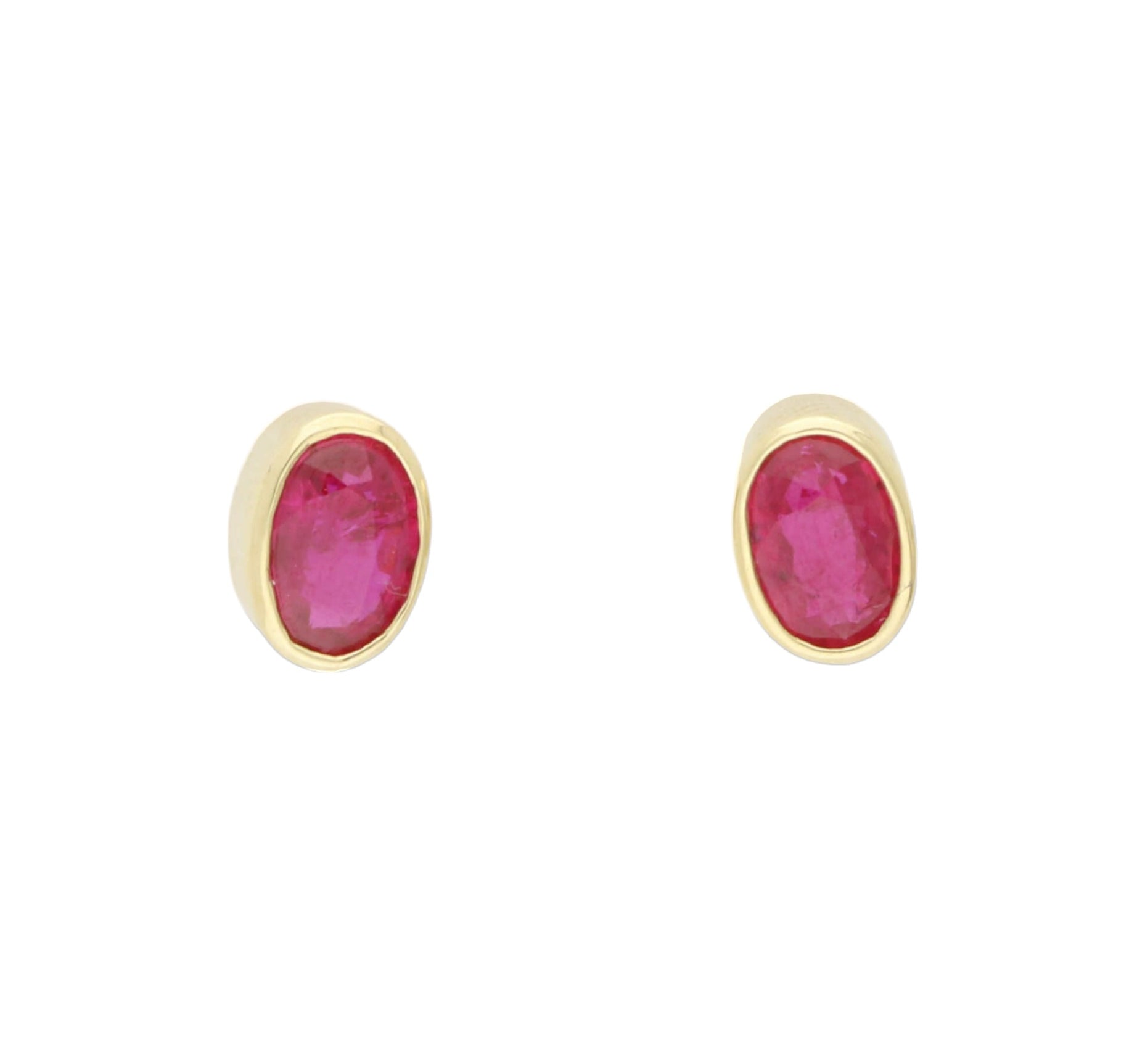 A pair of yellow gold oval ruby ear studs.