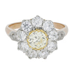 Antique Old Cut Yellow-Tinted Diamond Cluster Ring in 18ct Gold & Platinum