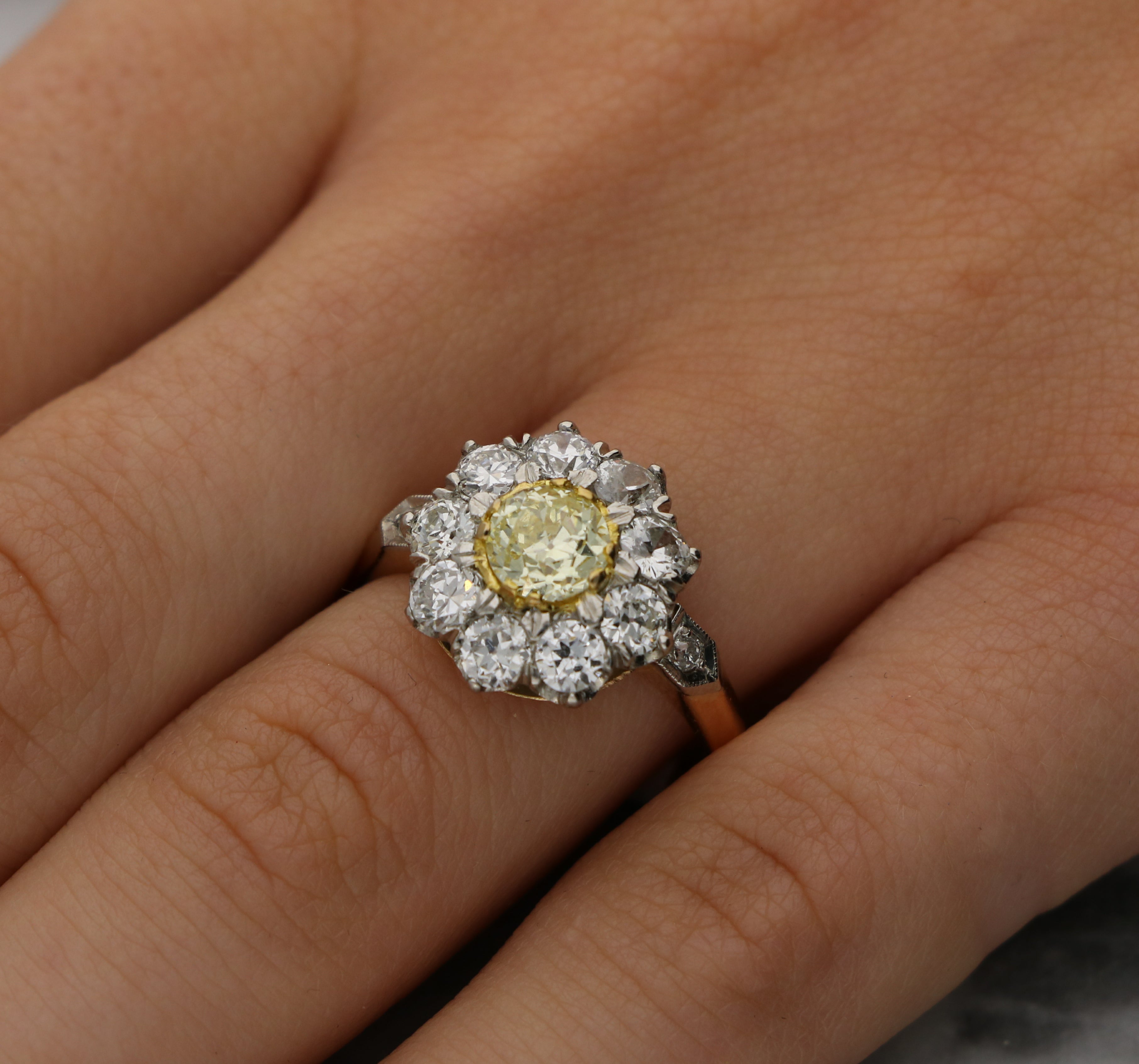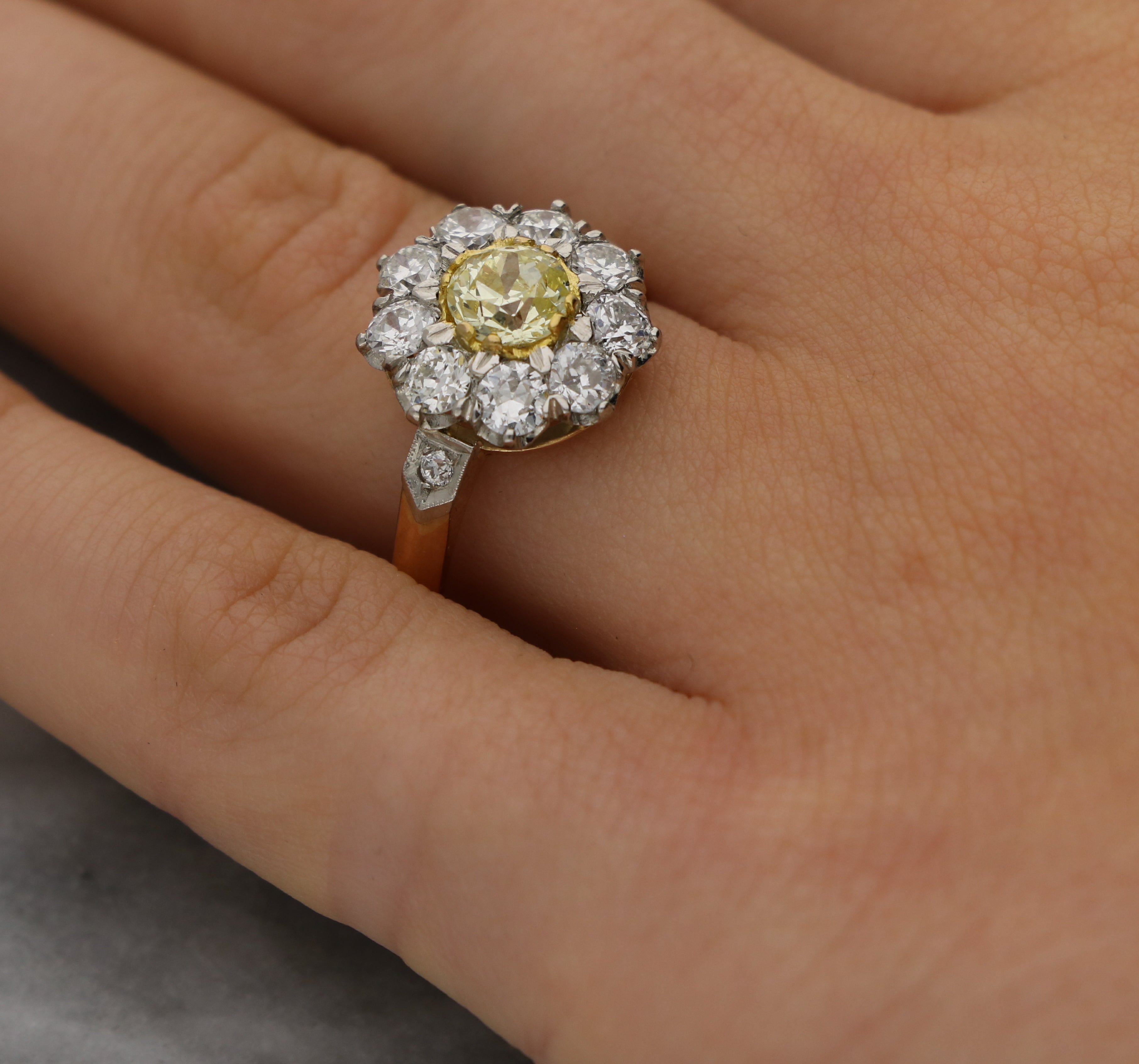 Antique Yellow Diamond Old Cut Diamond Cluster Ring