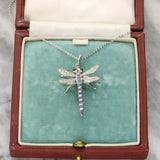 Amethyst, Sapphire and Diamond Platinum Insect Dragonfly Pendant