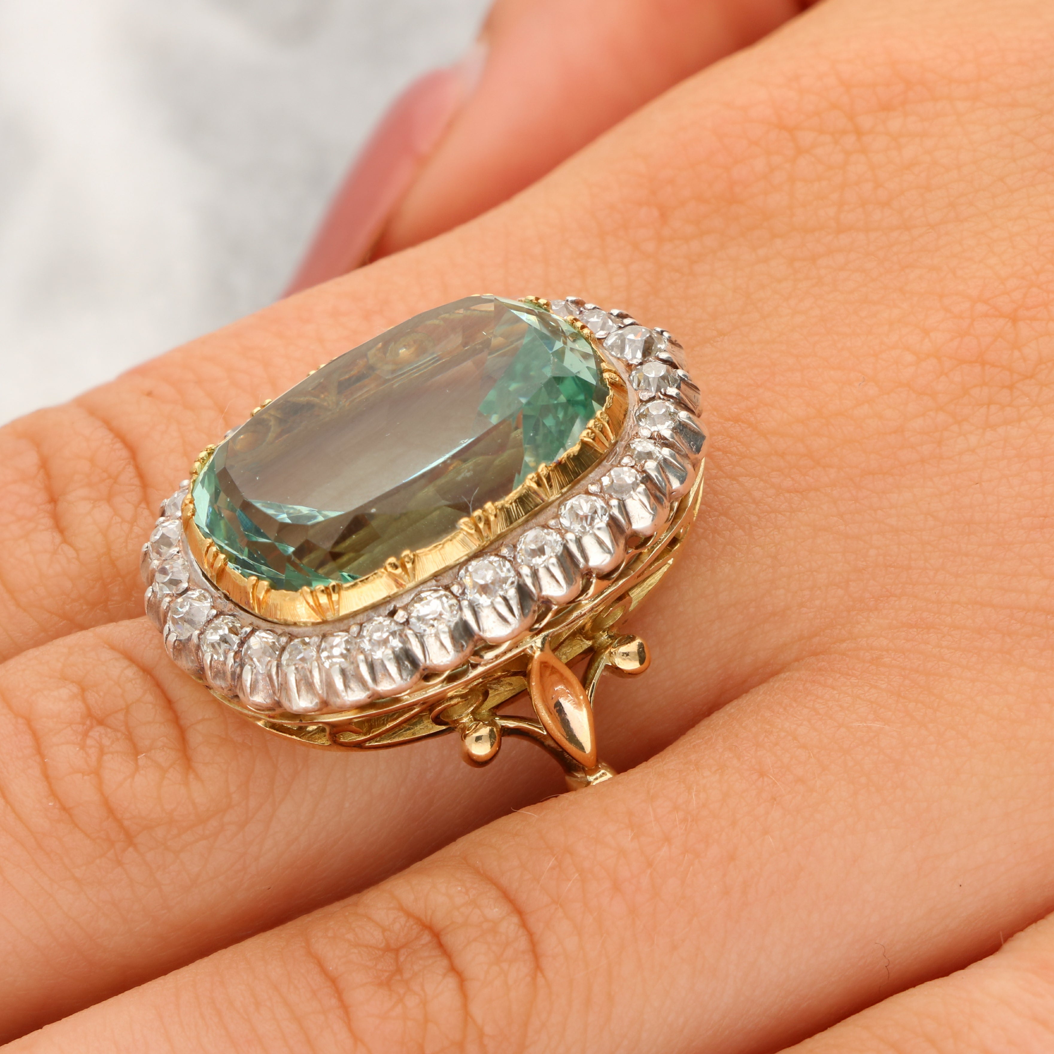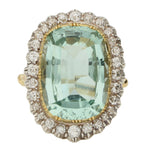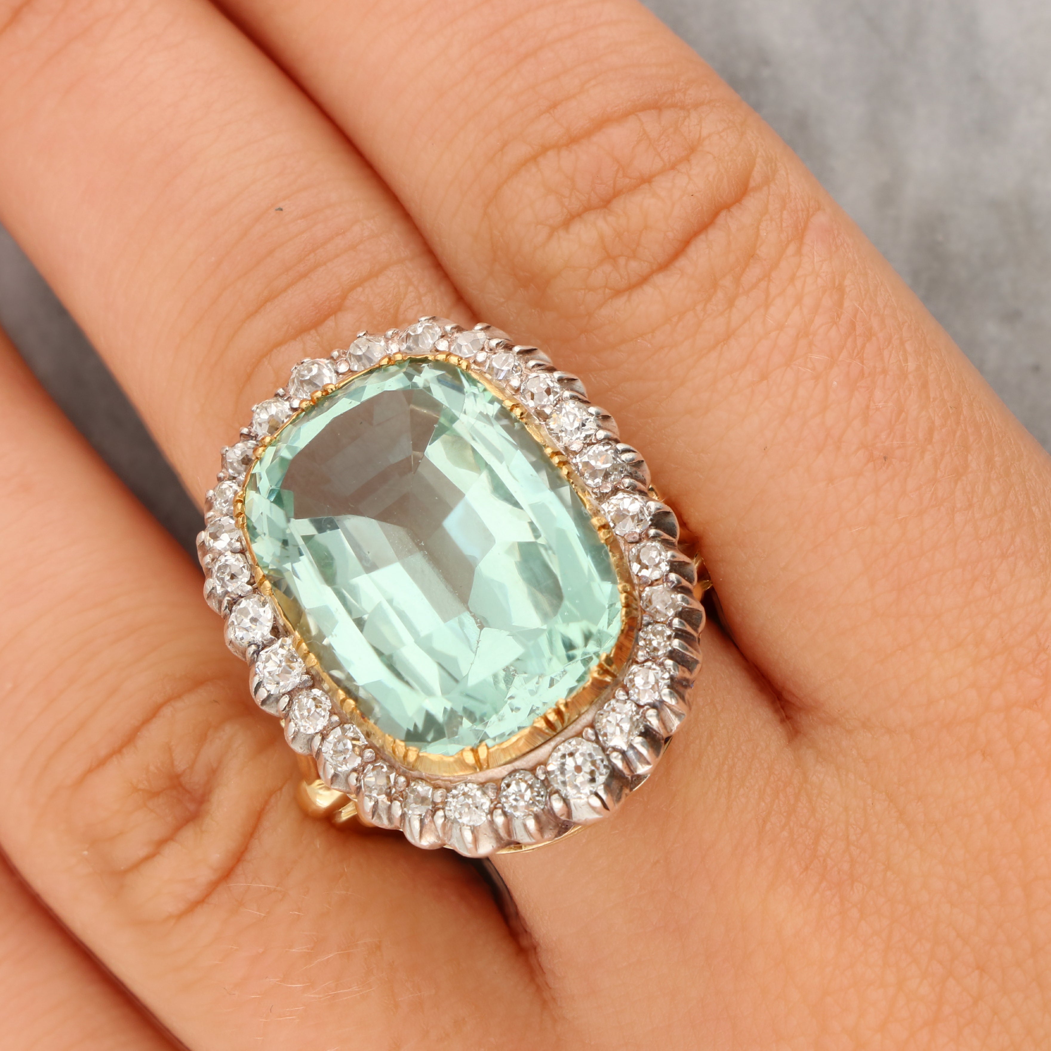 A beautiful antique 16.41ct aquamarine and diamond cluster ring set in 18k gold.