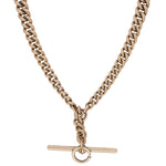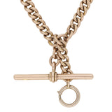 A chunky double Albert chain necklace, beautifully crafted in 9ct rose gold. The chain graduates in thickness, the widest point being approximately 8 mm and tapering to 6 mm. Each solid link is clearly stamped 9 ct and the piece features classic dog‑clip clasps and a T‑bar that hangs from the chain.