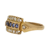 Antique Sapphire and Diamond Panel Ring in 15ct Yellow Gold