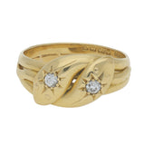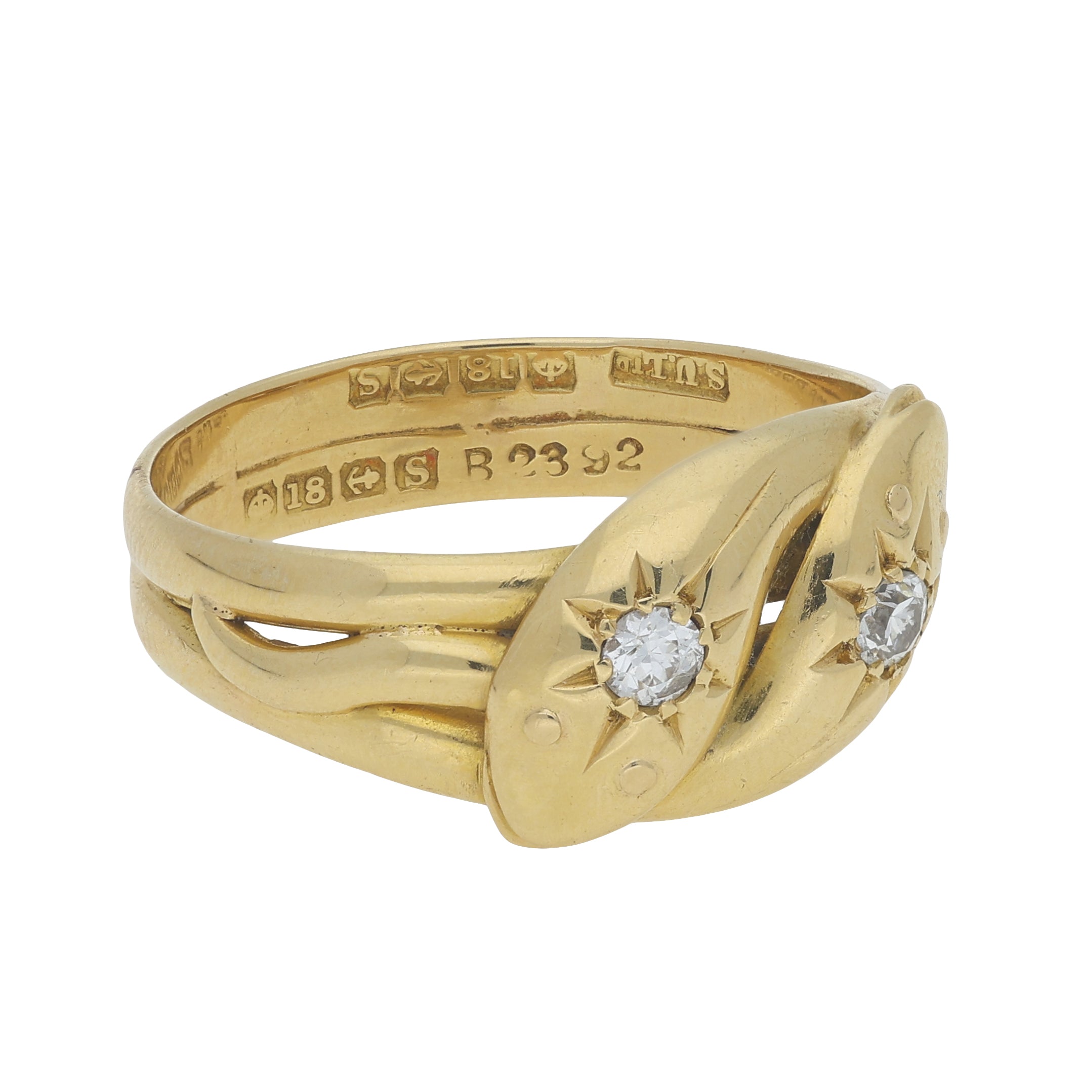 A stylish antique double diamond snake ring set in 18k yellow gold.