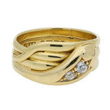 A stylish antique diamond snake ring set in 18k yellow gold.
