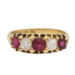 Ruby and Diamond Five-Stone Ring in 18K Yellow Gold
