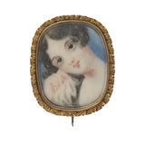 Victorian Hand-Painted Portrait Brooch in Yellow Gold