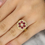 Vintage Ruby and Diamond Cluster Ring in 18 Carat Yellow Gold