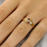 Antique 1893 Ruby Old Cut Diamond and Pearl Ring