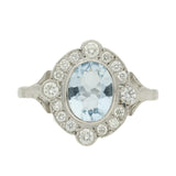Art Deco Style Aquamarine and Diamond Cluster Ring