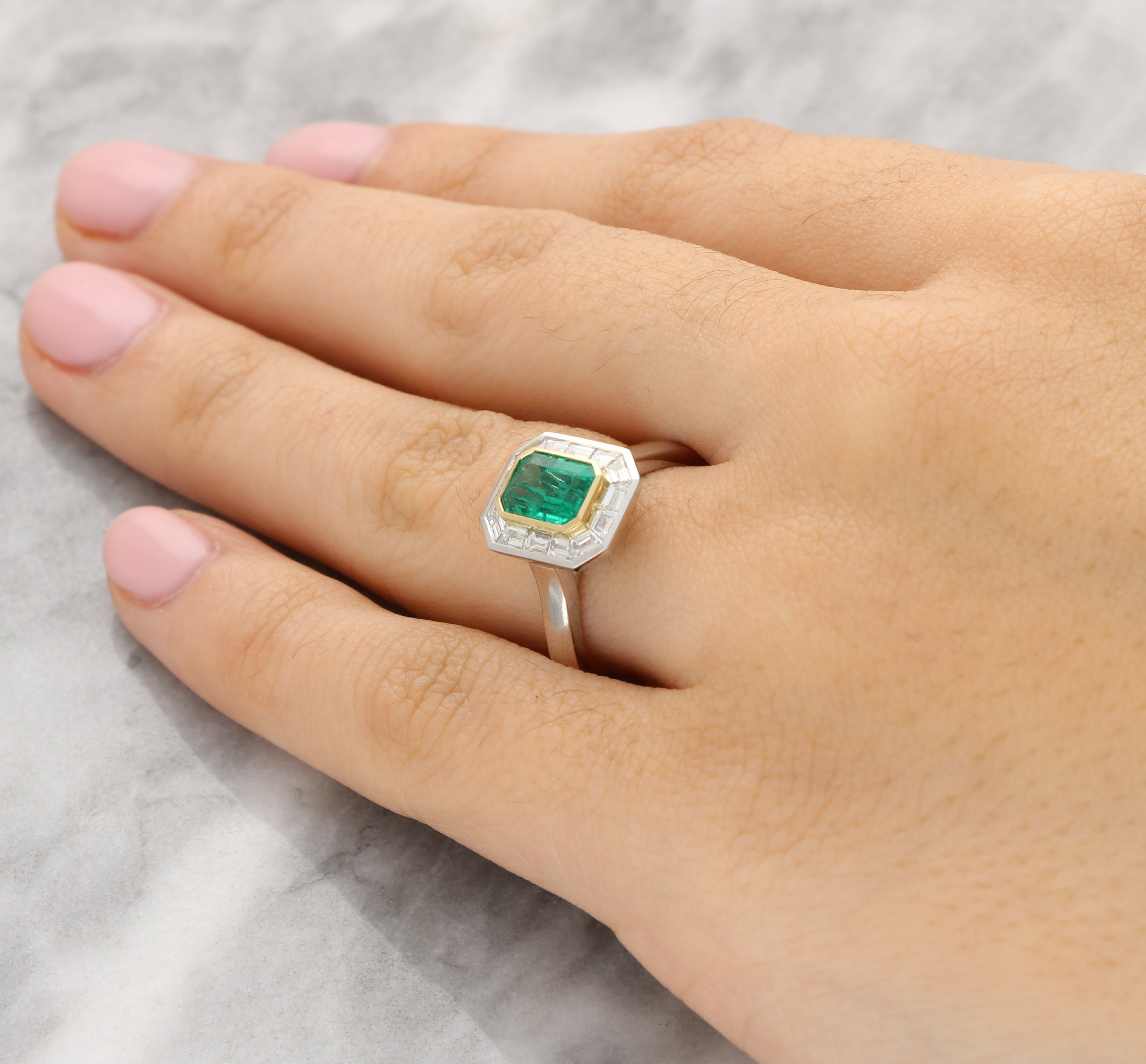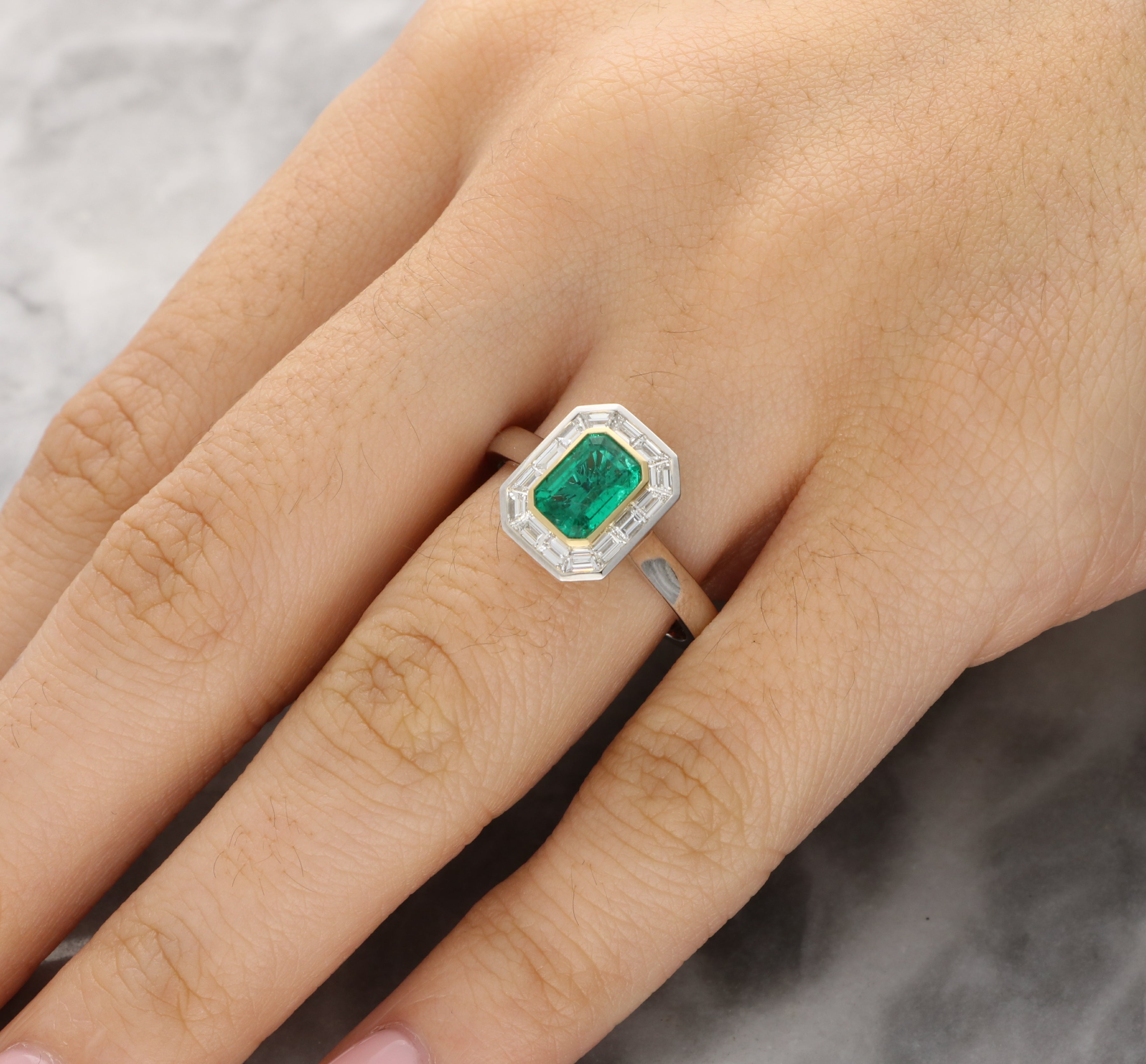 This emerald and diamond ring is a timeless statement piece, perfect for collectors of fine jewellery or as a unique alternative engagement ring.