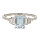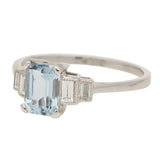 Art Deco Style Emerald-Cut Aquamarine and Diamond Ring