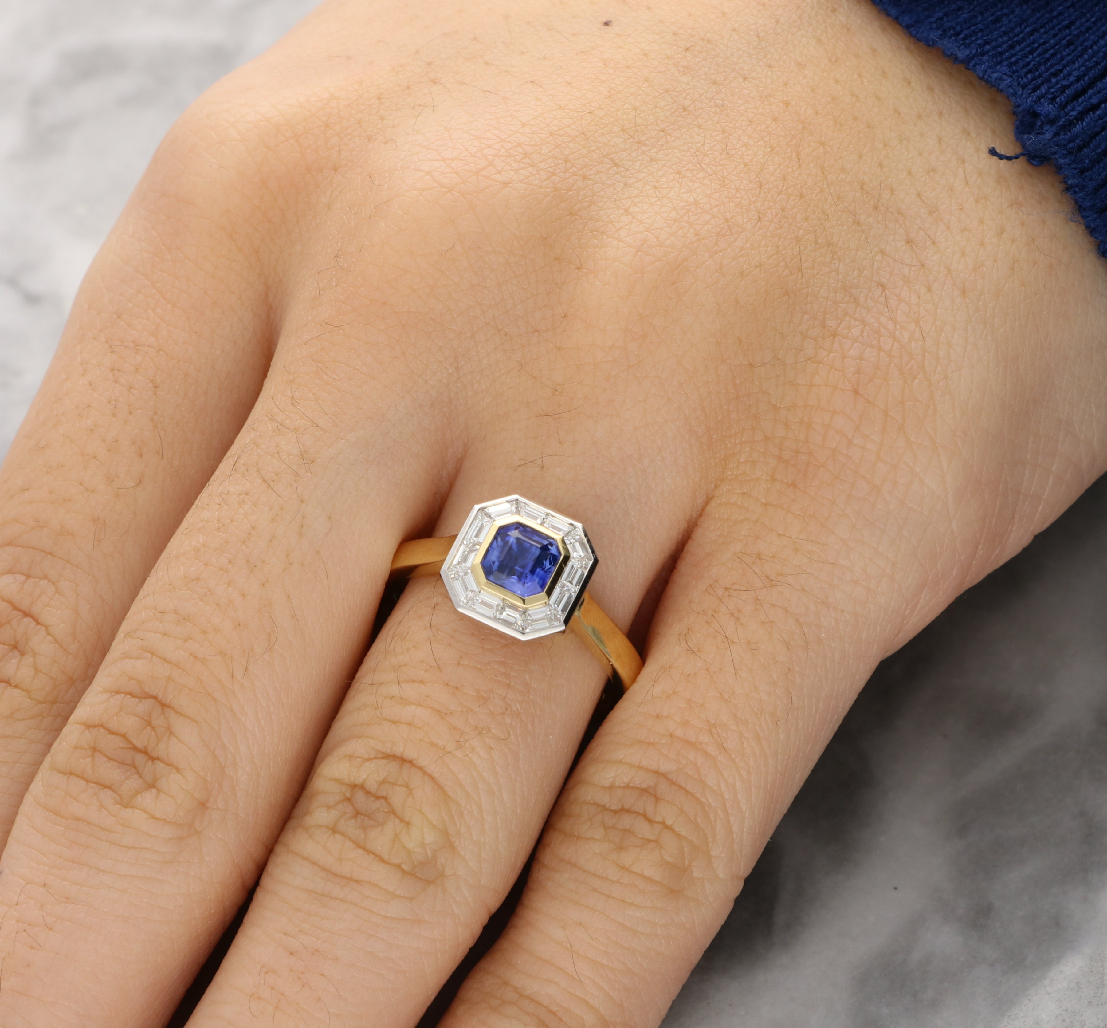 Elegant and eye-catching, this sapphire and diamond ring is a timeless statement piece, perfect for collectors of fine jewellery or as a unique alternative engagement ring.