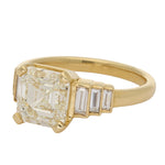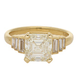 Asscher Cut Diamond and Baguette Diamond Ring Set in 18K Yellow Gold