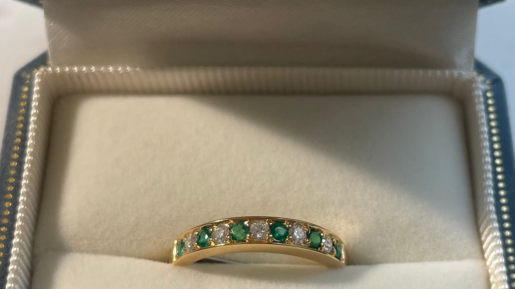 Bespoke Listing: Emerald and Diamond Half Eternity Ring