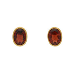Oval Cut Garnet Stud Earrings Set In 9K Yellow Gold.