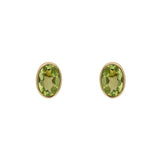Oval Cut Peridot Stud Earrings Set In 9ct Yellow Gold.