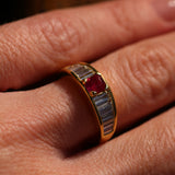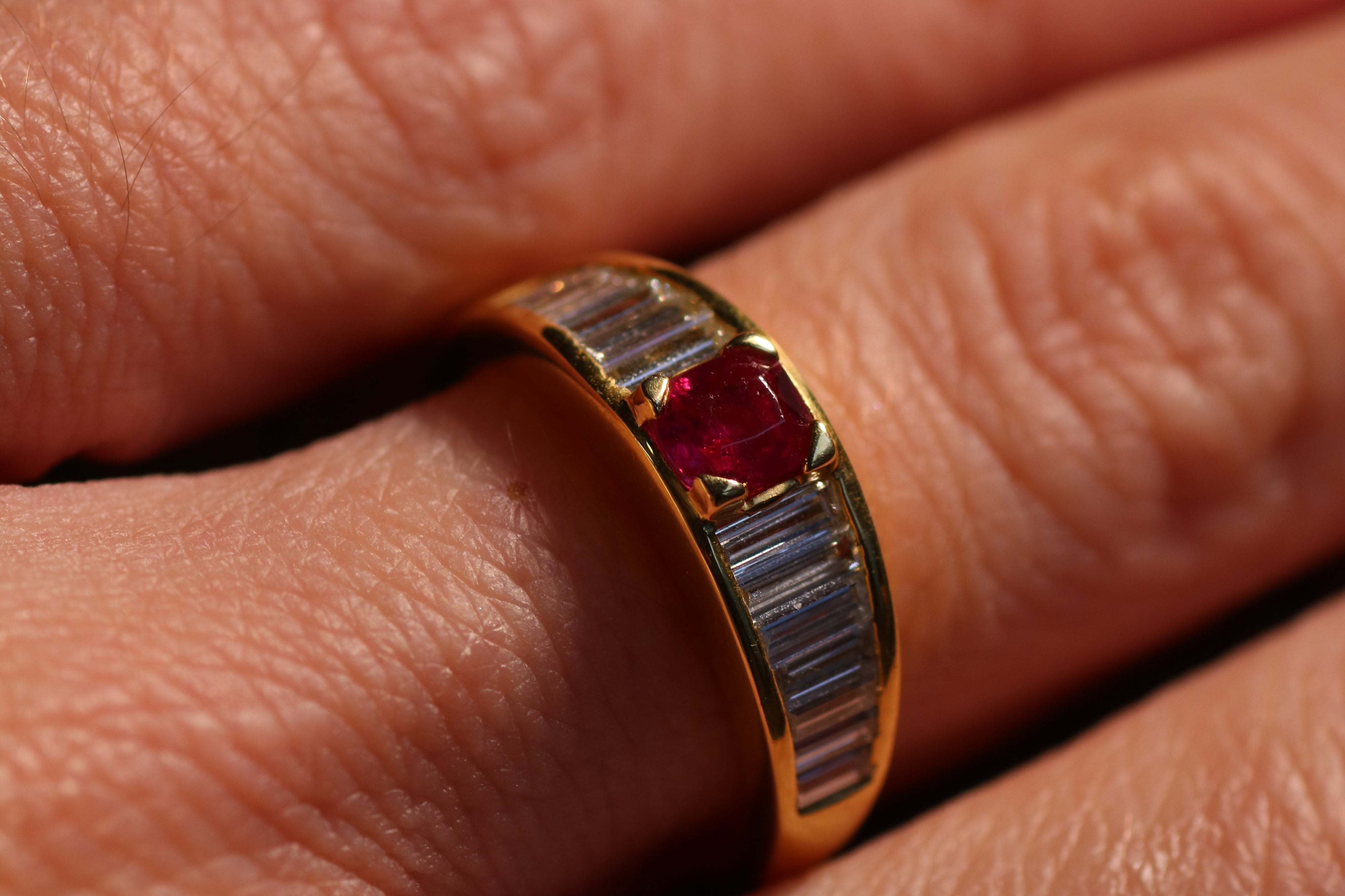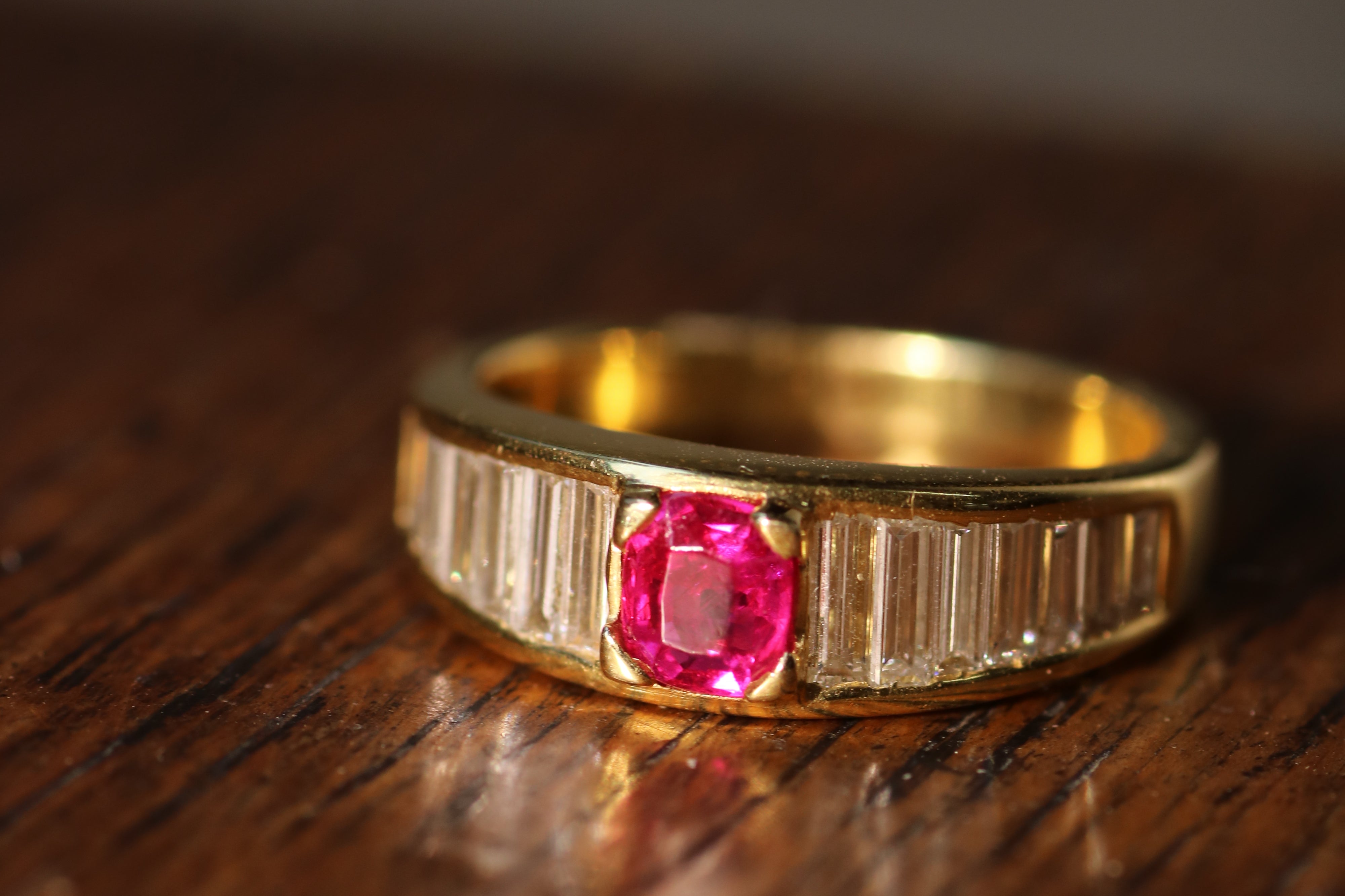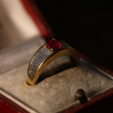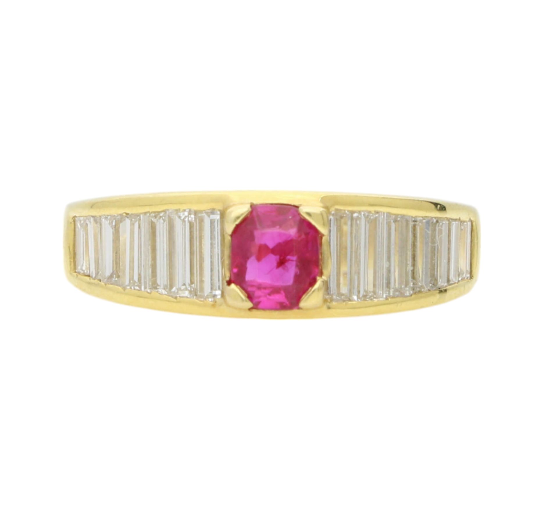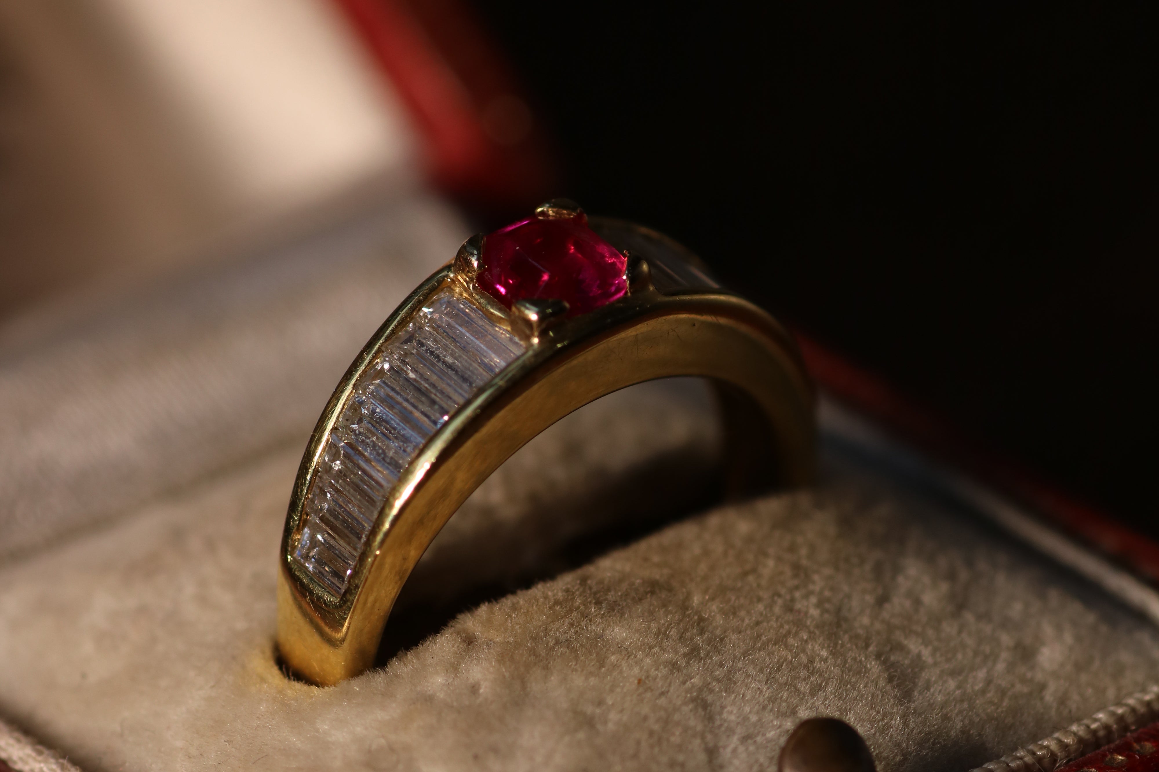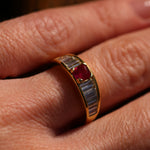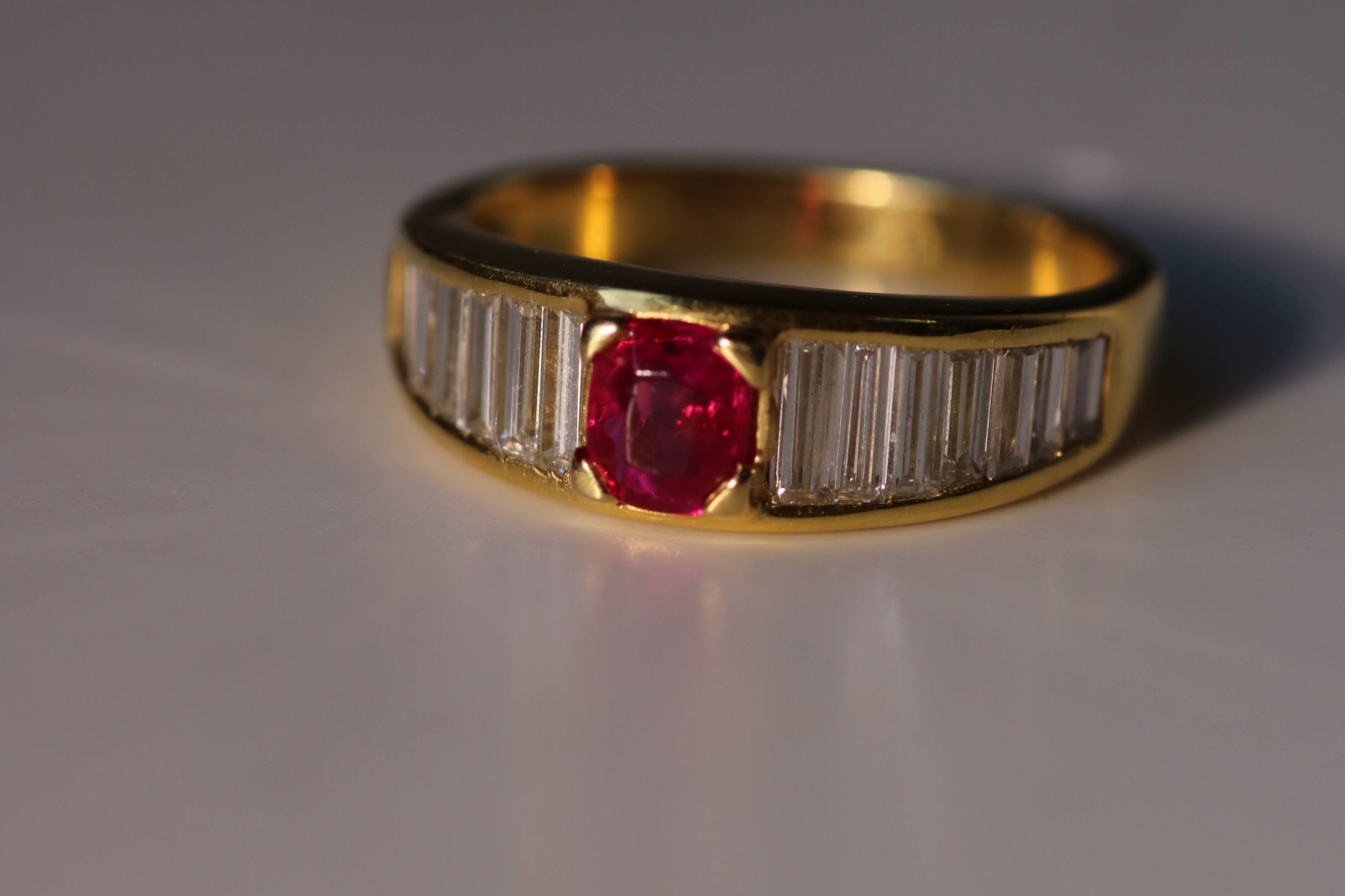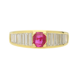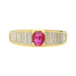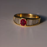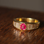 Burma no heat ruby and baguette diamond ring