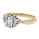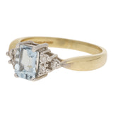 Vintage Emerald Cut Aquamarine and Diamond Ring