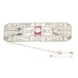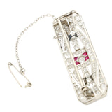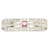 NO LISTY Art Deco Old Cut Diamond and Ruby Panel Brooch
