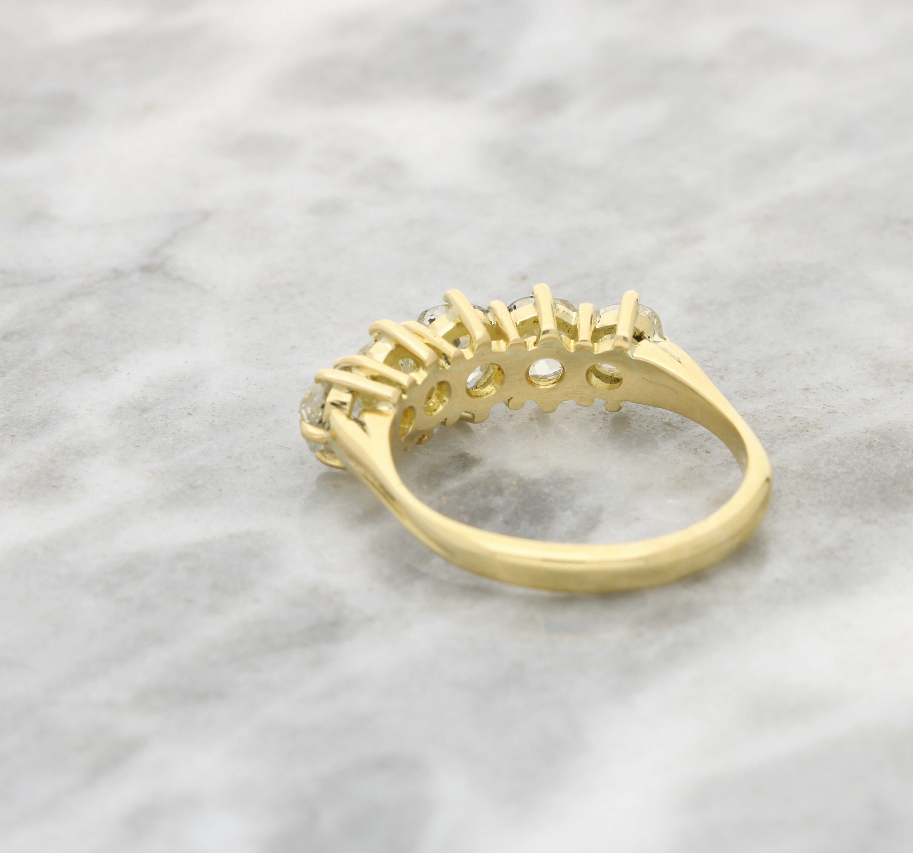 Make a bold statement with this exquisite old cut diamond 5-stone ring. Featuring a dazzling row of beautifully cut diamonds, this timeless piece is a true symbol of elegance and sophistication.