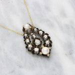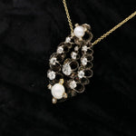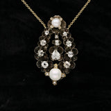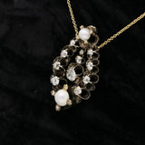 A unique yellow gold chain and old cut diamond and pearl pendant.