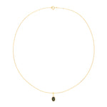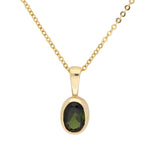 This pendant is centred on an oval-cut green tourmaline, bezel-set to showcase its rich green hue. The smooth yellow gold surround enhances the natural colour of the stone while providing a contemporary finish. The minimalist design allows the gemstone’s unique colour to take centre stage. The stone drops from a simple polished bail.