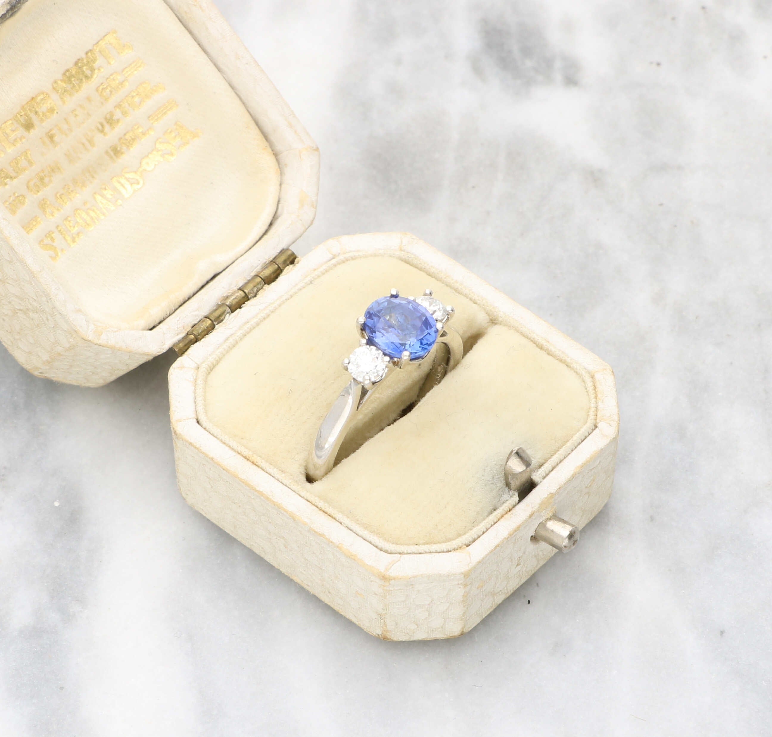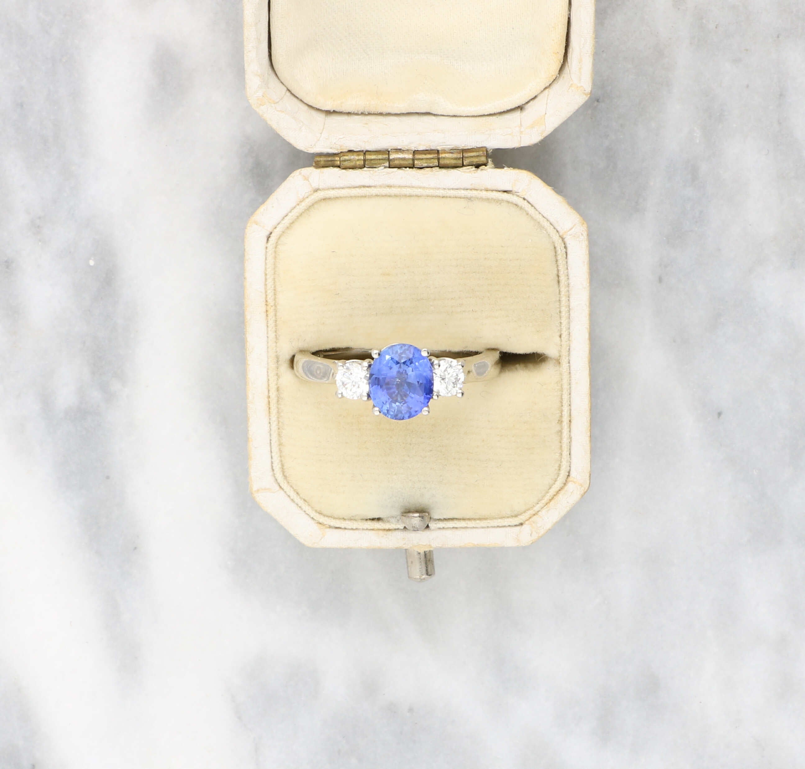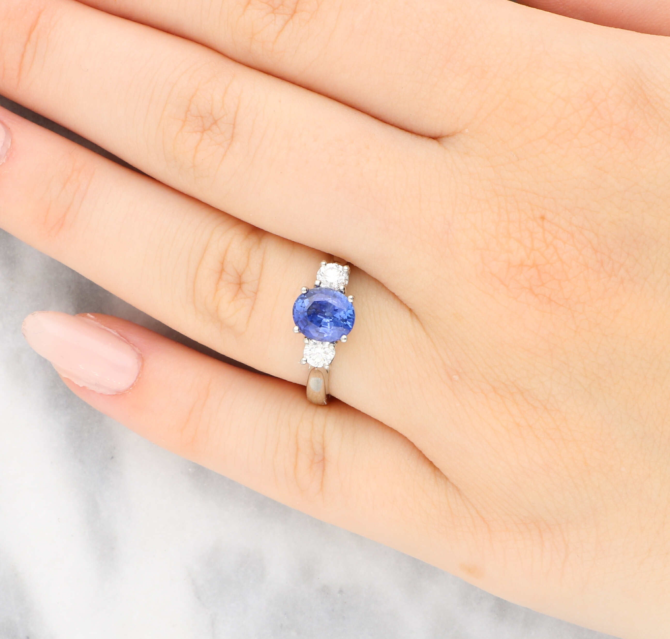 Carat Weight: The weight of the sapphire is 1.62ct and the diamonds weigh .35ct