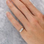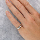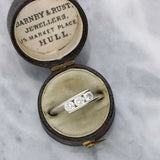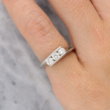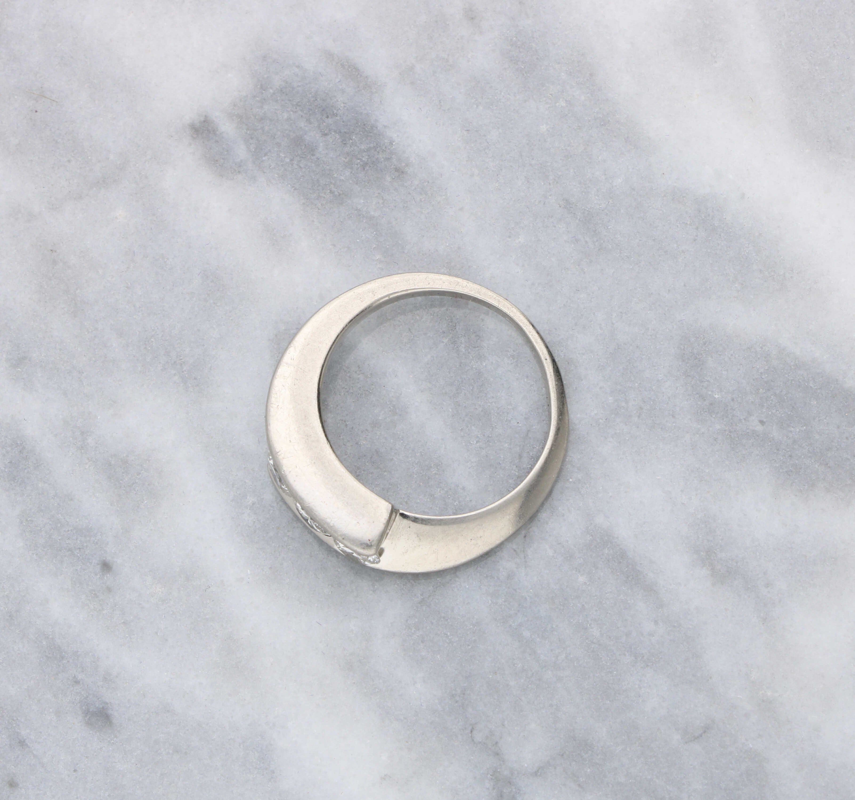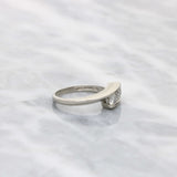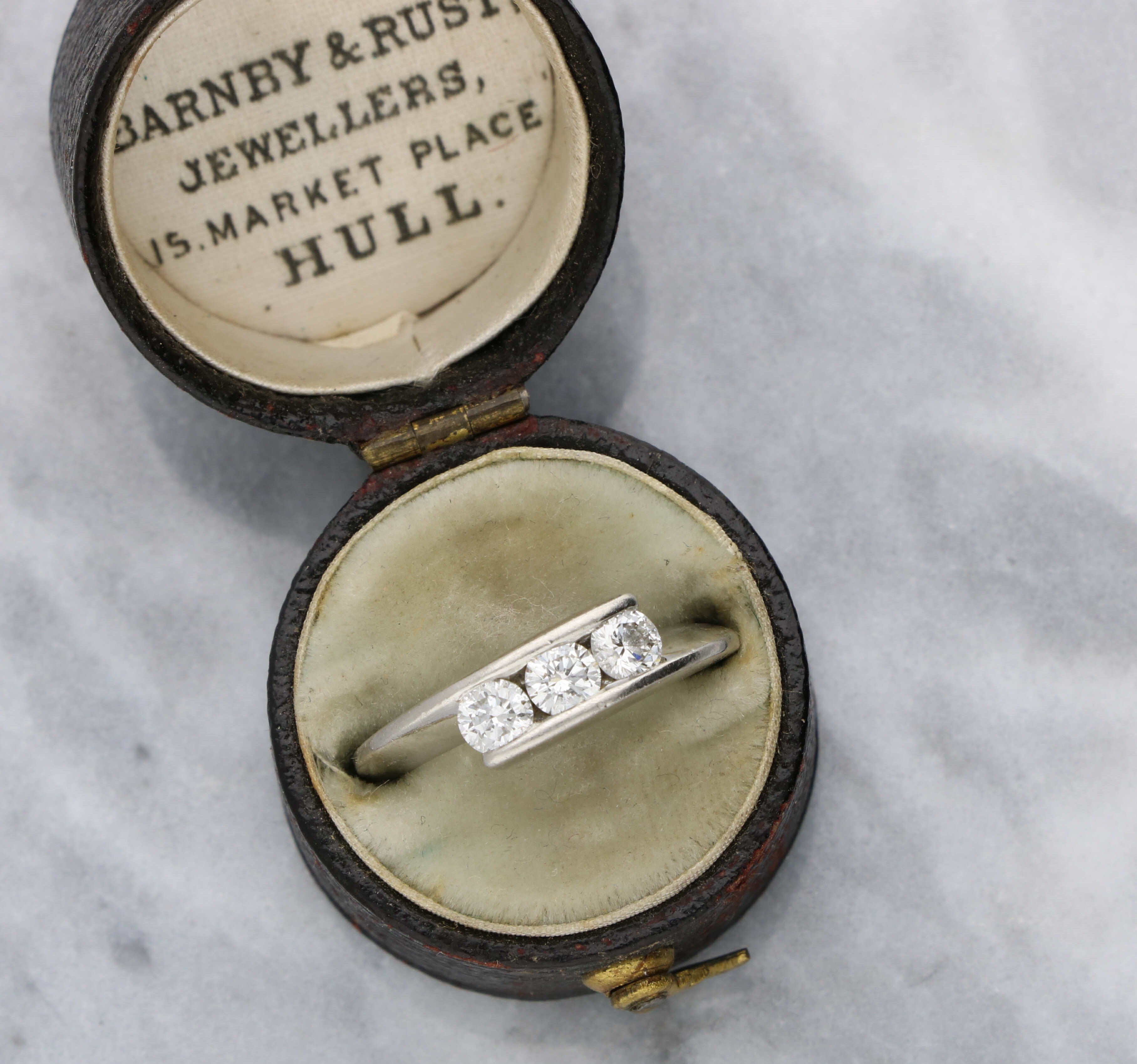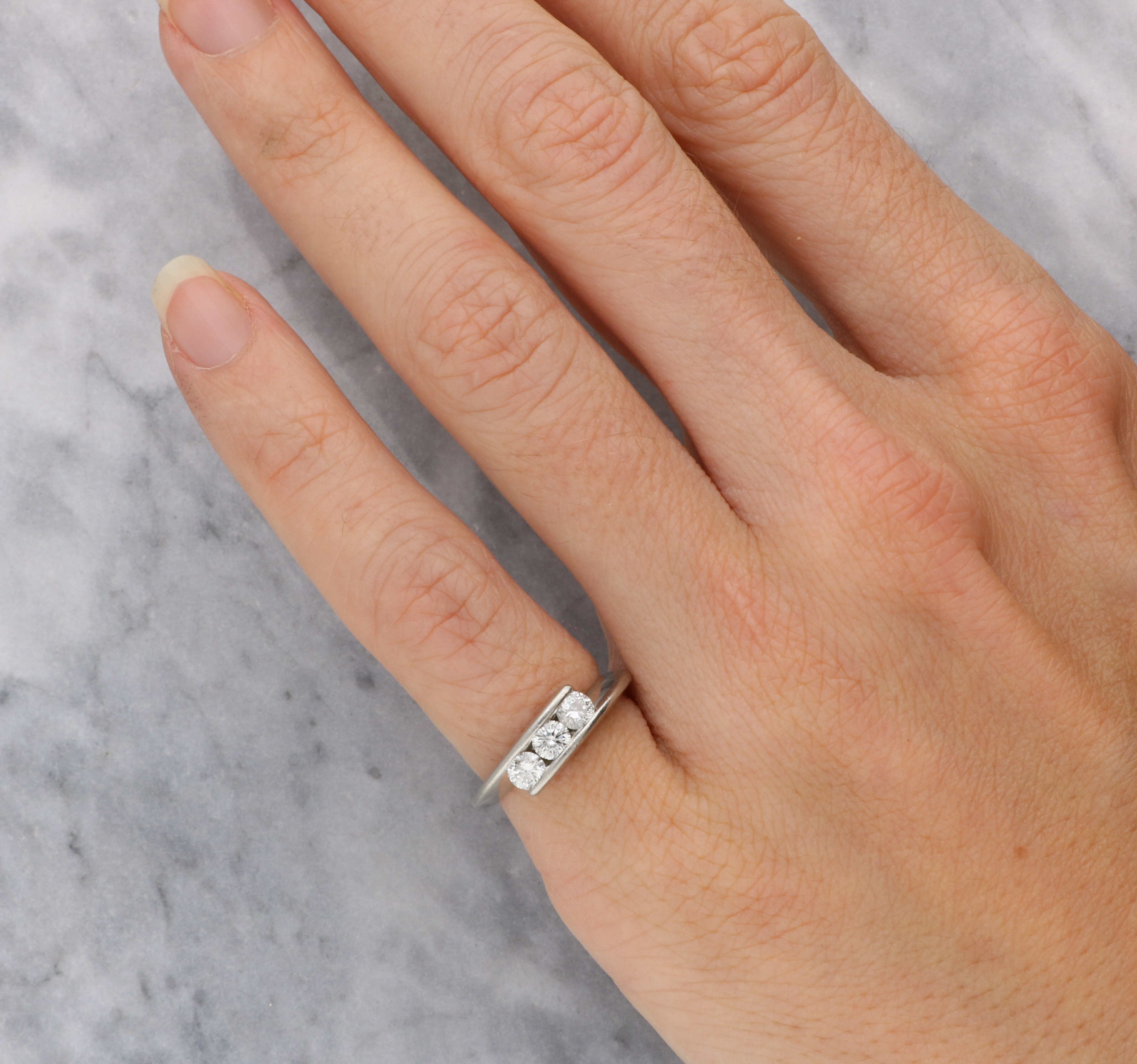 A sweet 3-stone diamond crossover ring set in platinum, hallmarked London.