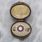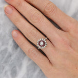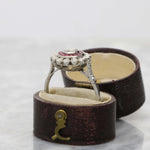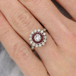 Diamond and ruby target engagement ring