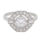 Platinum Hexagonal Art Deco Style Diamond Ring
