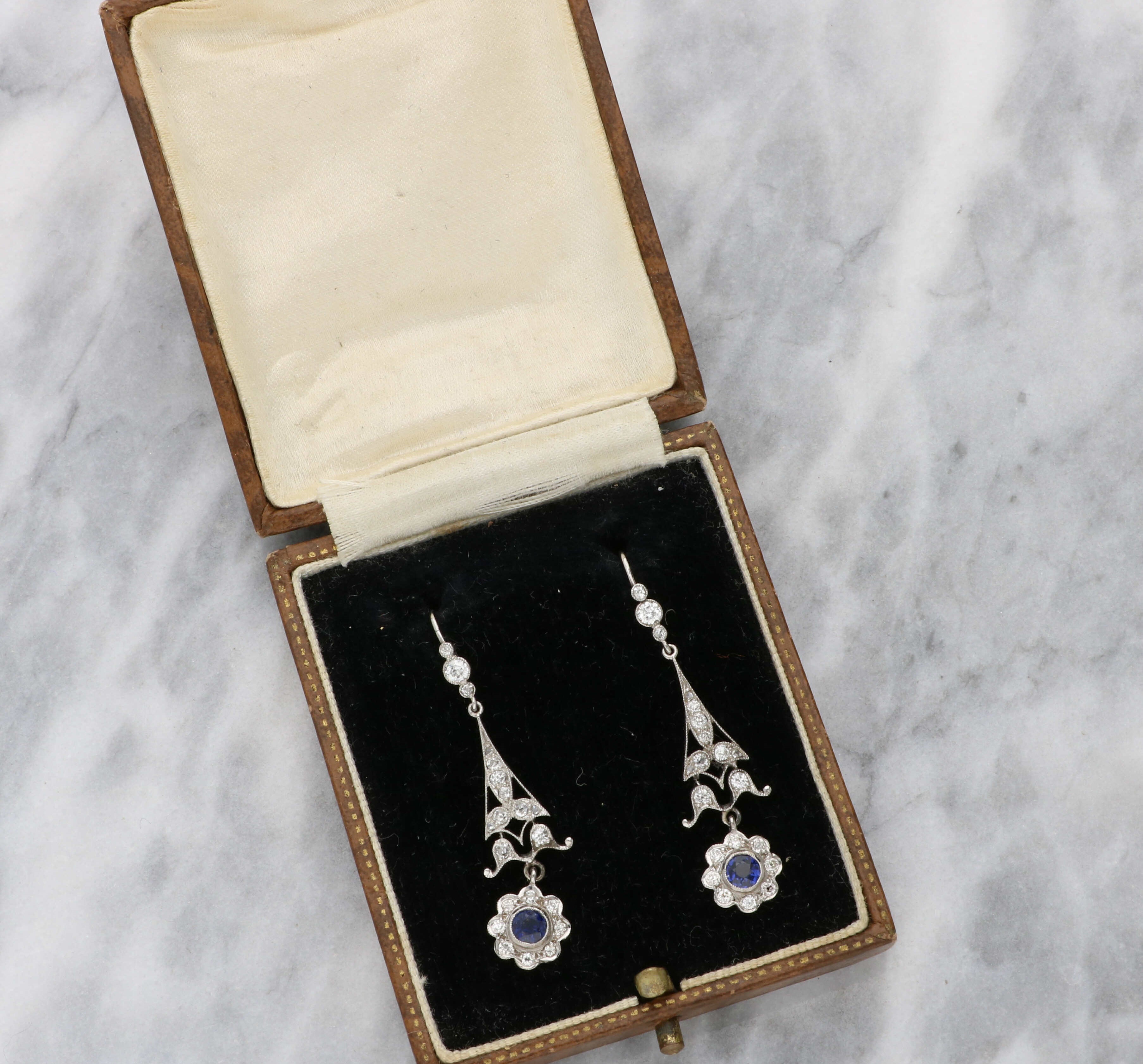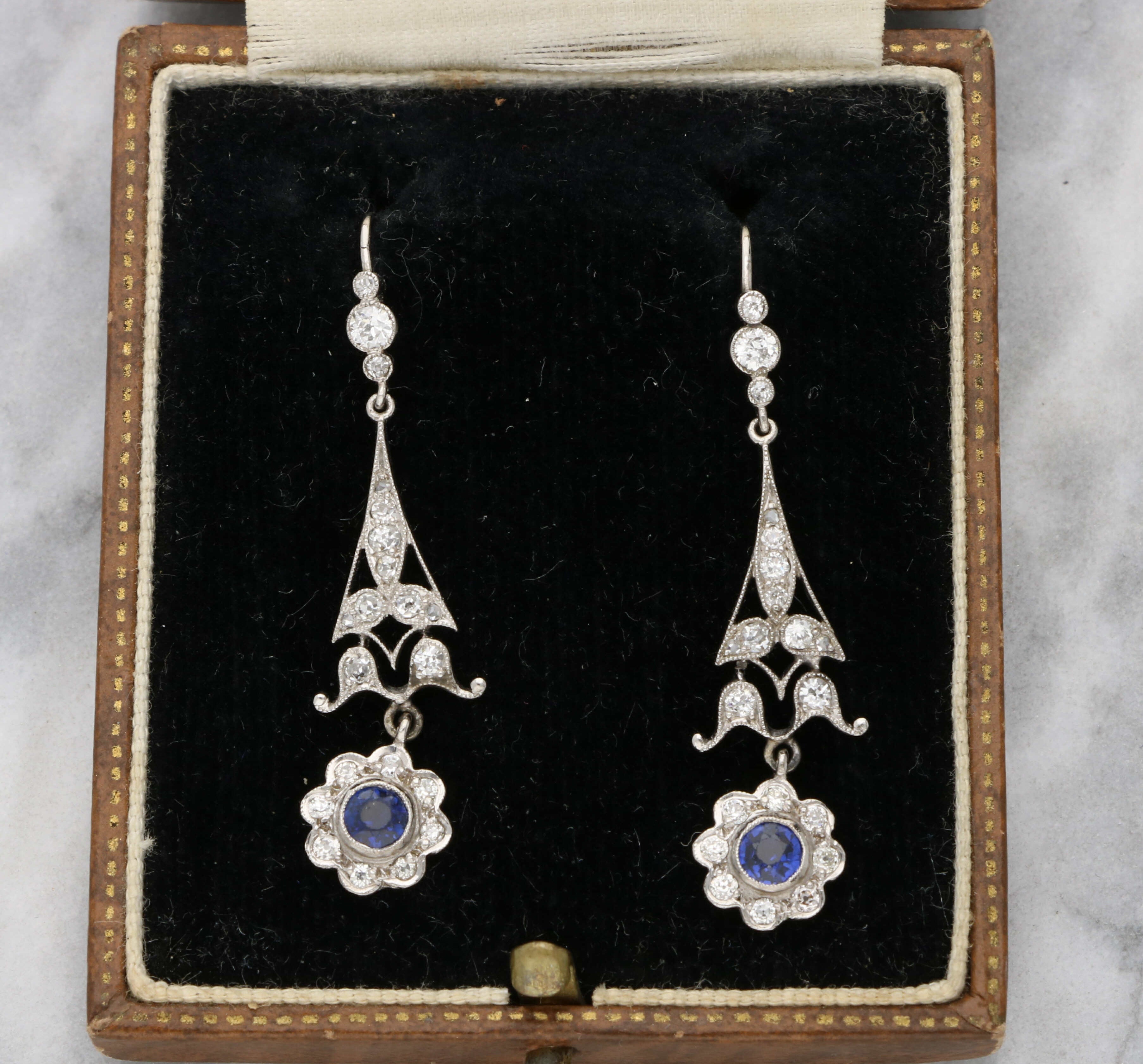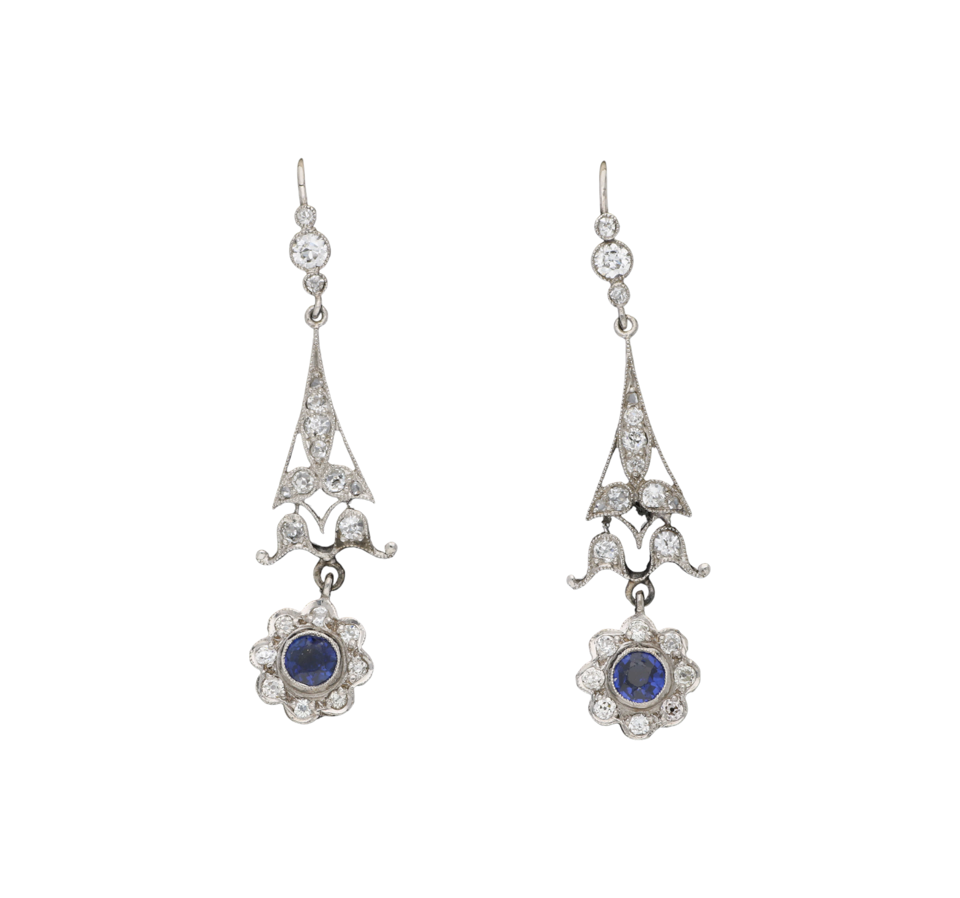 A lovely pair of sapphire and diamond drop cluster earrings.