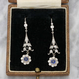 Sapphire and diamond drop cluster earrings