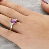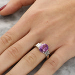 Purple Sapphire and Baguette Cut Diamond Ring Set in Platinum