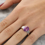 This purple sapphire and diamond ring works perfectly as a dress piece or as an alternative engagement ring for someone who prefers coloured stones.