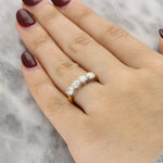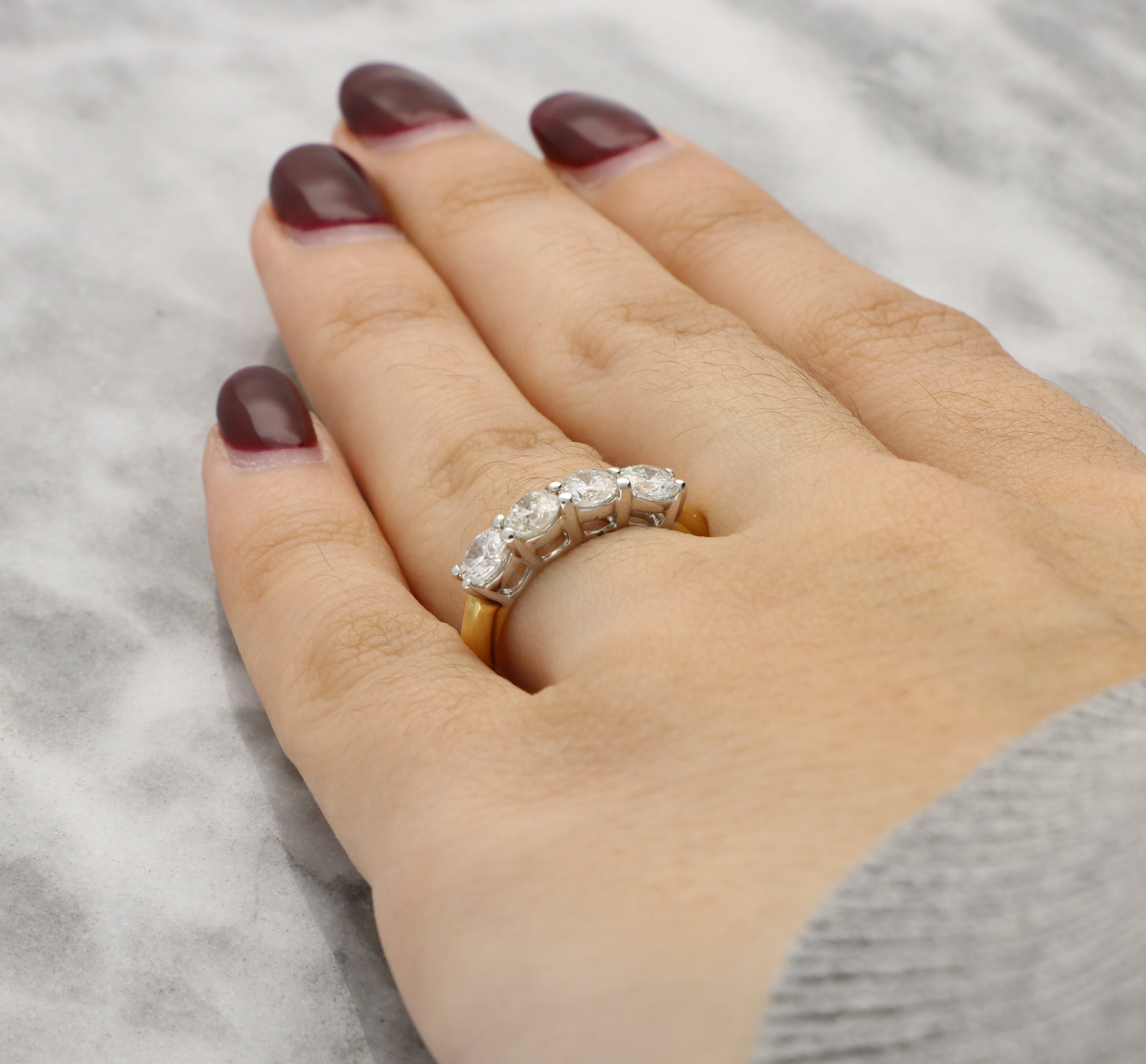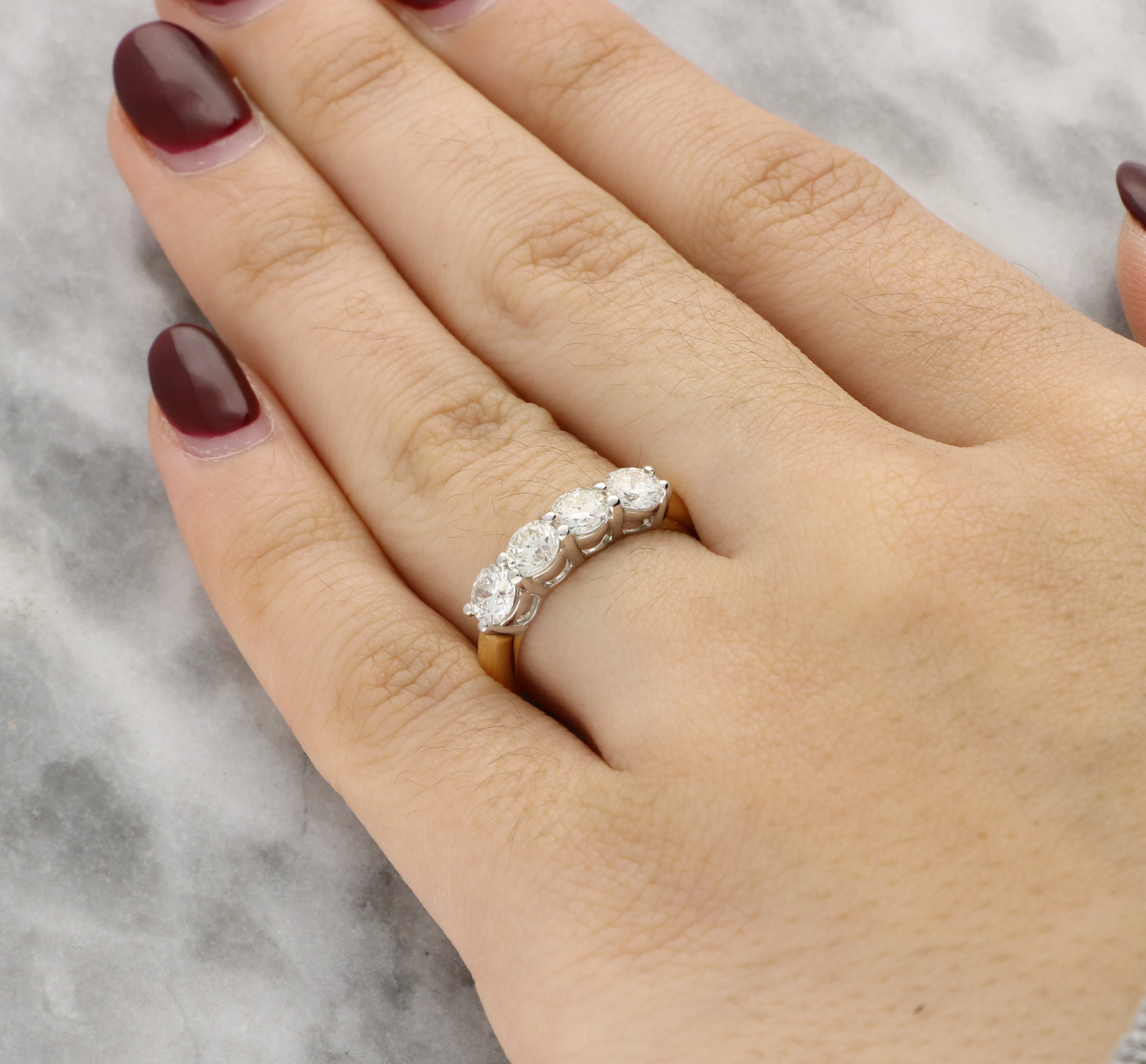 This four stone diamond ring can be worn as a wedding band, an anniversary ring, or as a classic diamond ring for everyday wear.