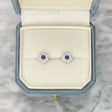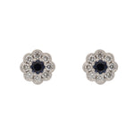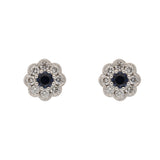 Round Sapphire and Diamond Floral Cluster Earrings Set in 18ct White Gold