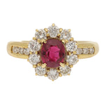 A beautiful vintage ruby and diamond cluster ring set in 18ct yellow gold.
