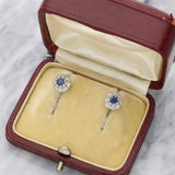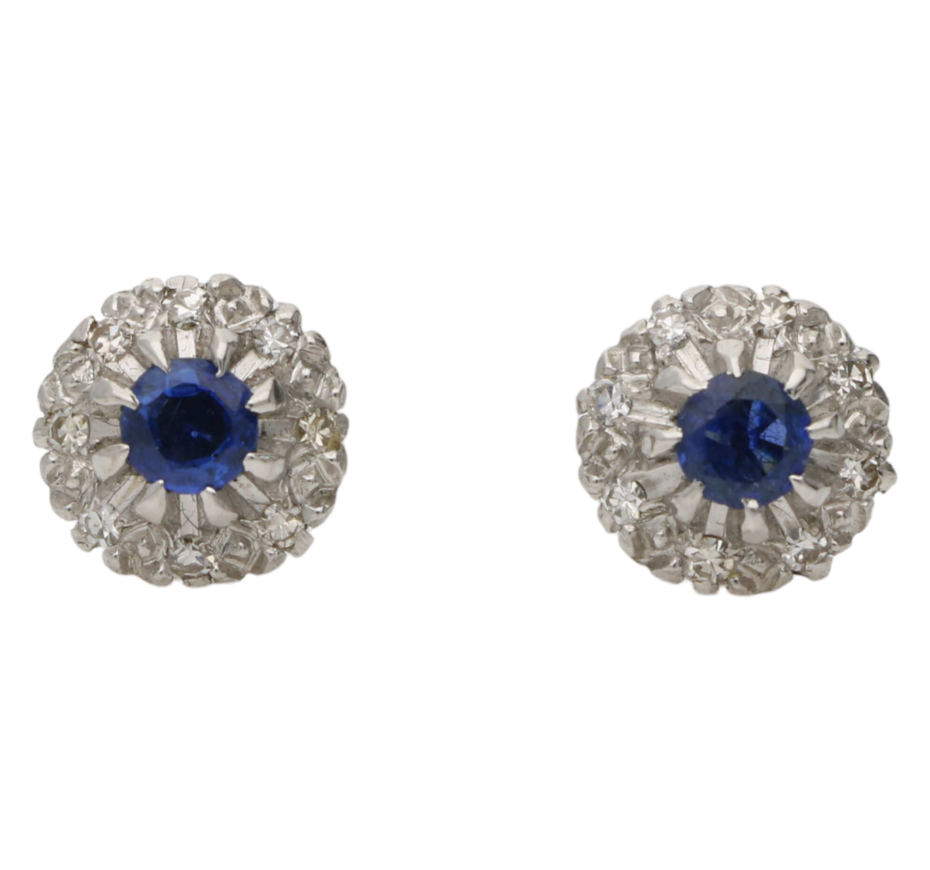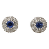 A lovely pair of round sapphire and diamond cluster earrings. The earrings are set with pin and butterfly settings.