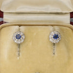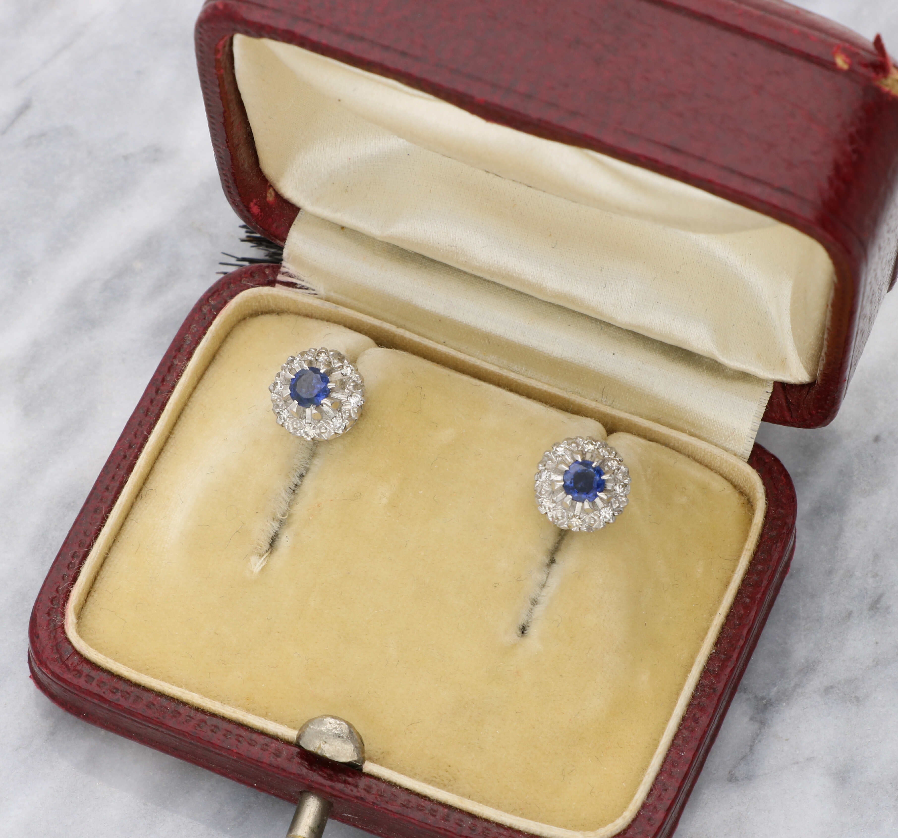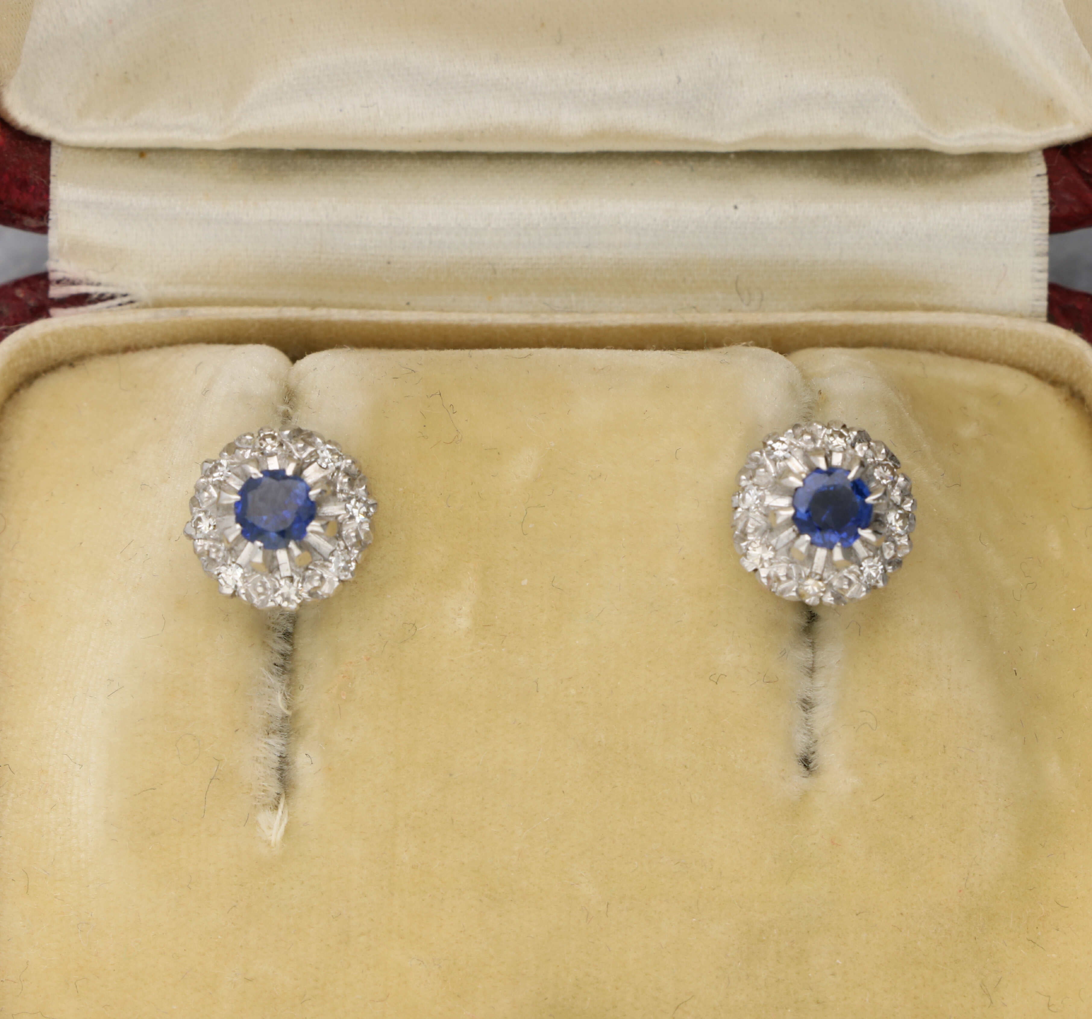 Dimensions: The sapphires measure approximately 3mm round and the clusters measure 8.5mm round.