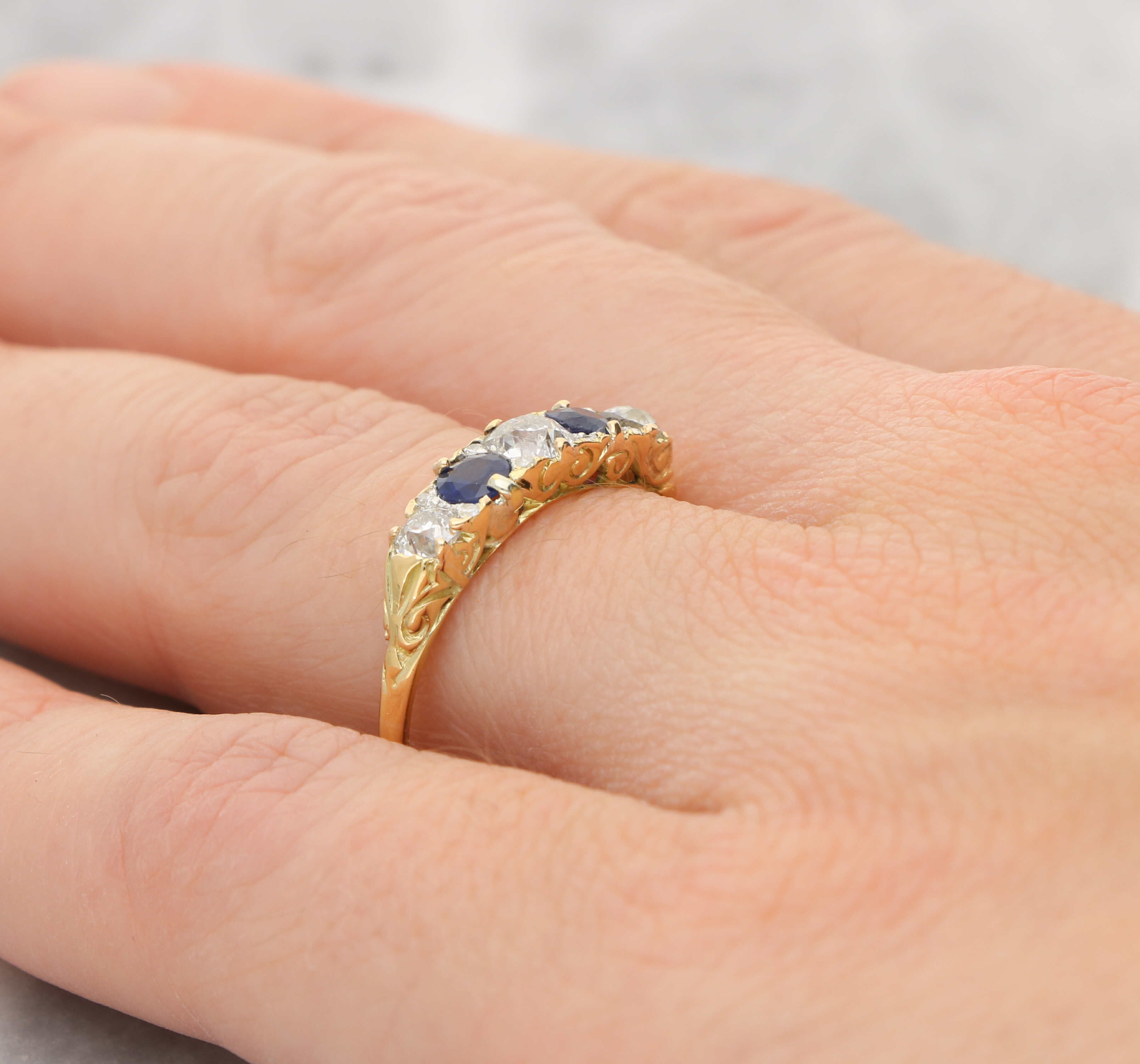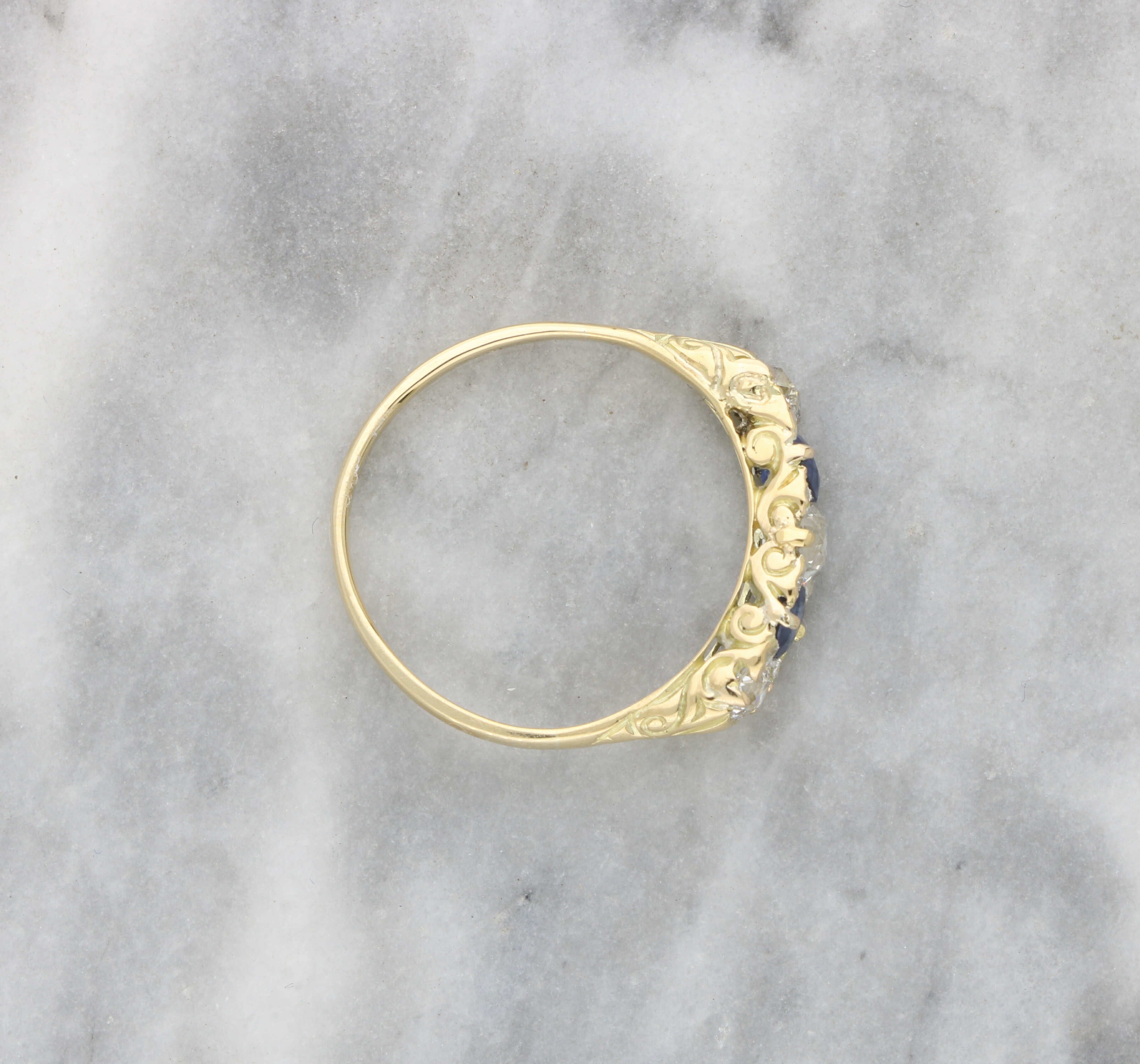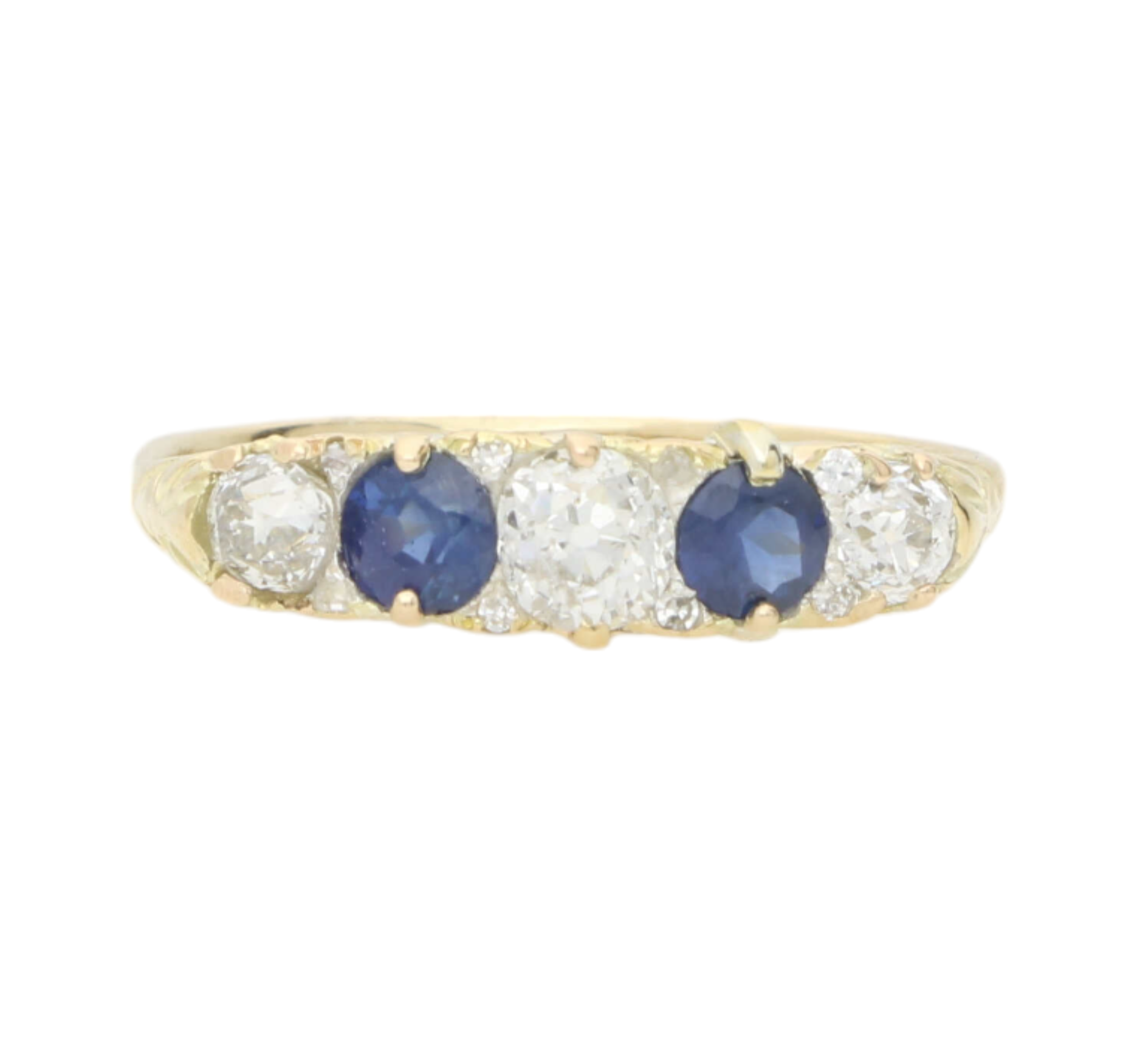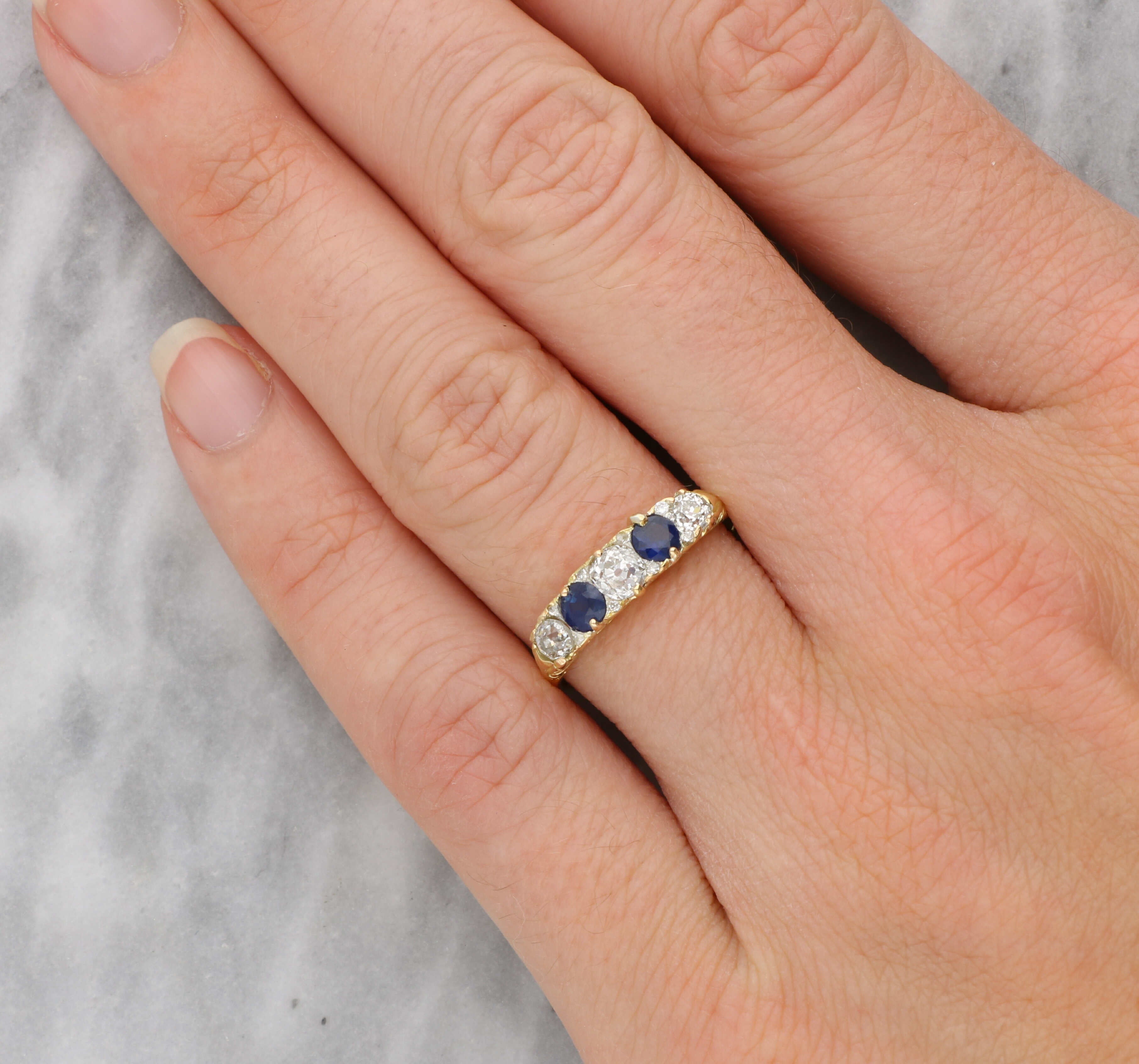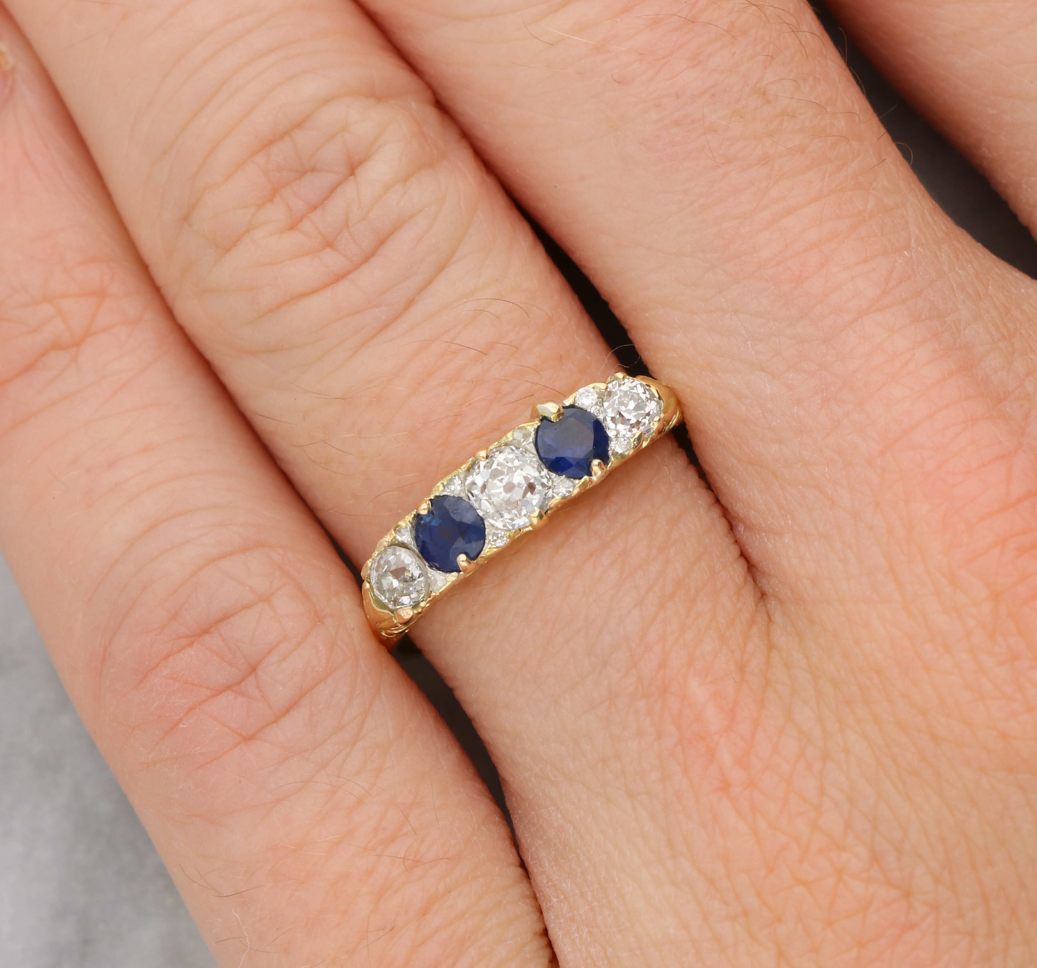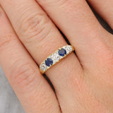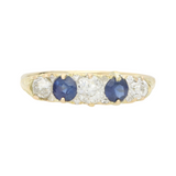 Sapphire and old cut diamond 5 stone ring